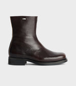 Black boots from Our Legacy. The Camion Boot is made of Italian calfskin and has a Vibram sole, a zipper closure on the inside and a small metal logo on the top of the outside. The boots are made in Portugal and come with a dust bag.