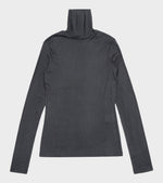 Dark grey long-sleeved blouse from Amomento. This blouse has a turtleneck neck and is made from a stretchy blend of tencel and wool.