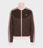 Green track jacket from Adidas. Classic Track Top has a high neck, a zip closure, a slant pocket on each side and the iconic stripes down the sleeves. On the left chest is an embroidered logo.