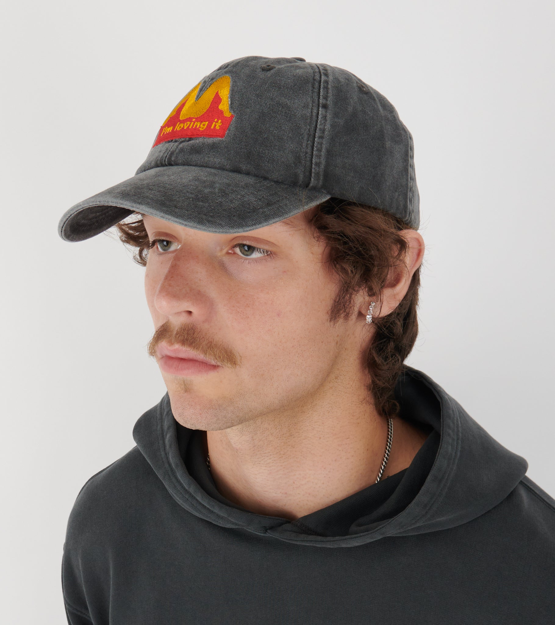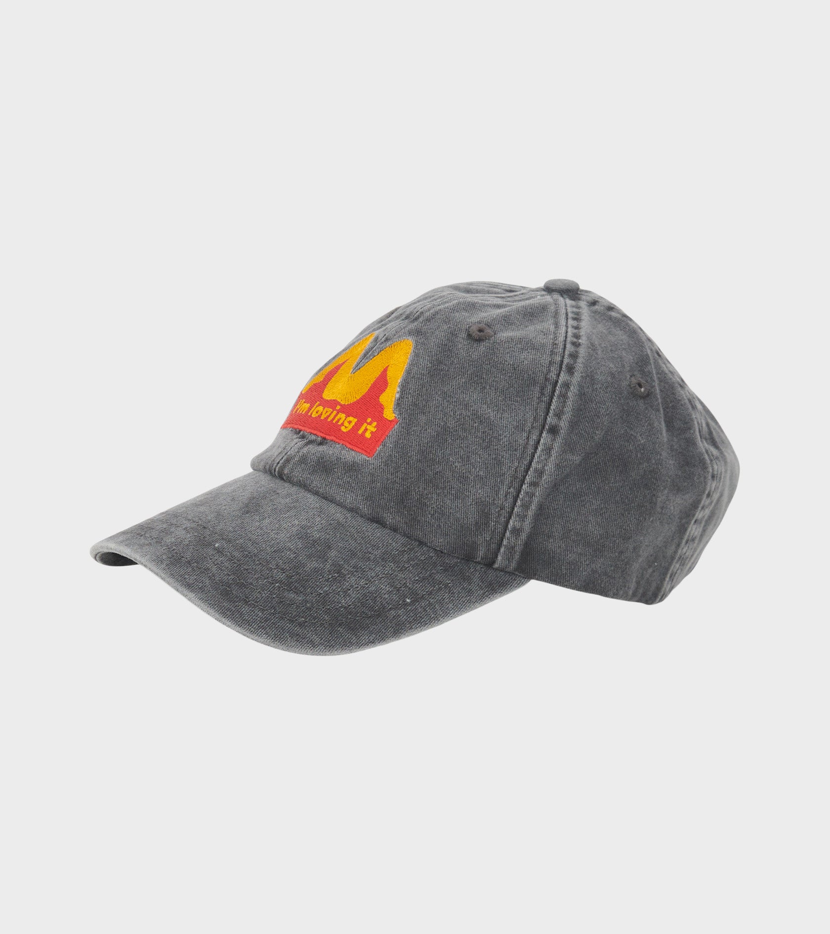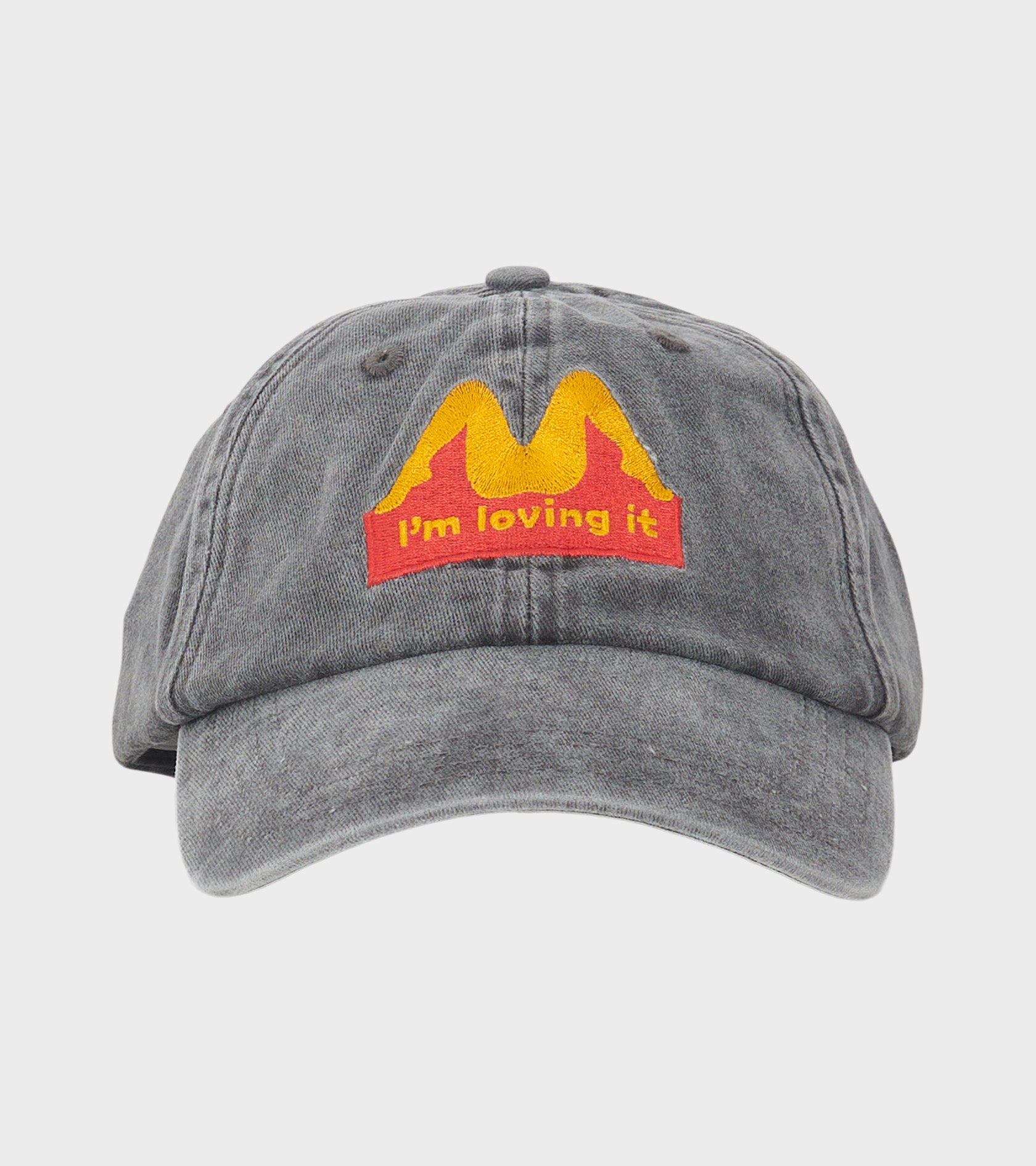 Grey cotton cap from Carne Bollente. The cap is adjustable in size and has a silver back and an embroidered motif on the front.