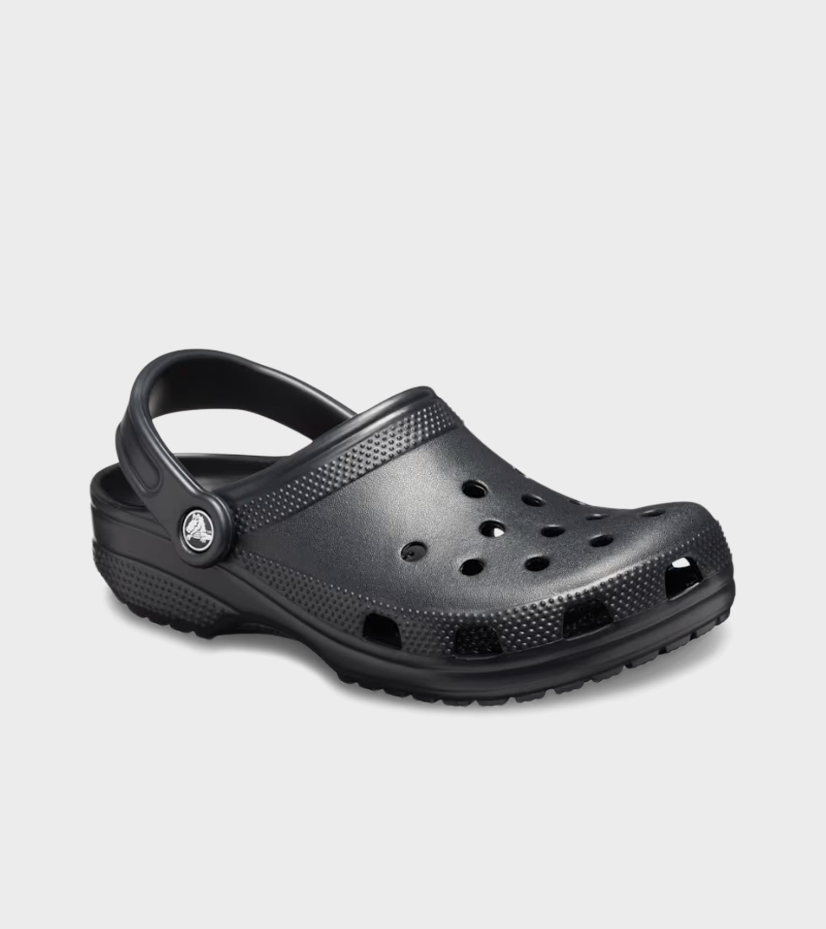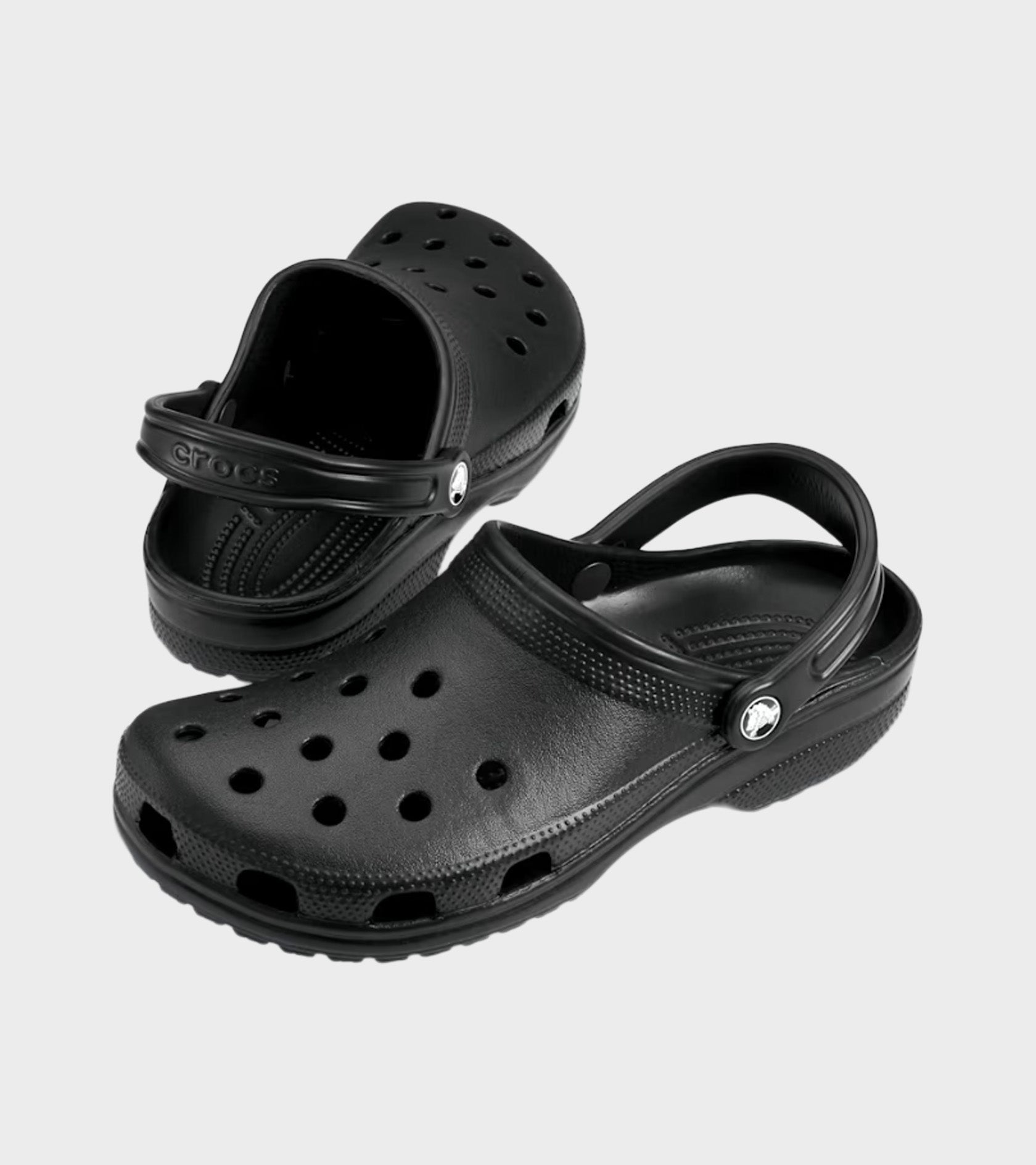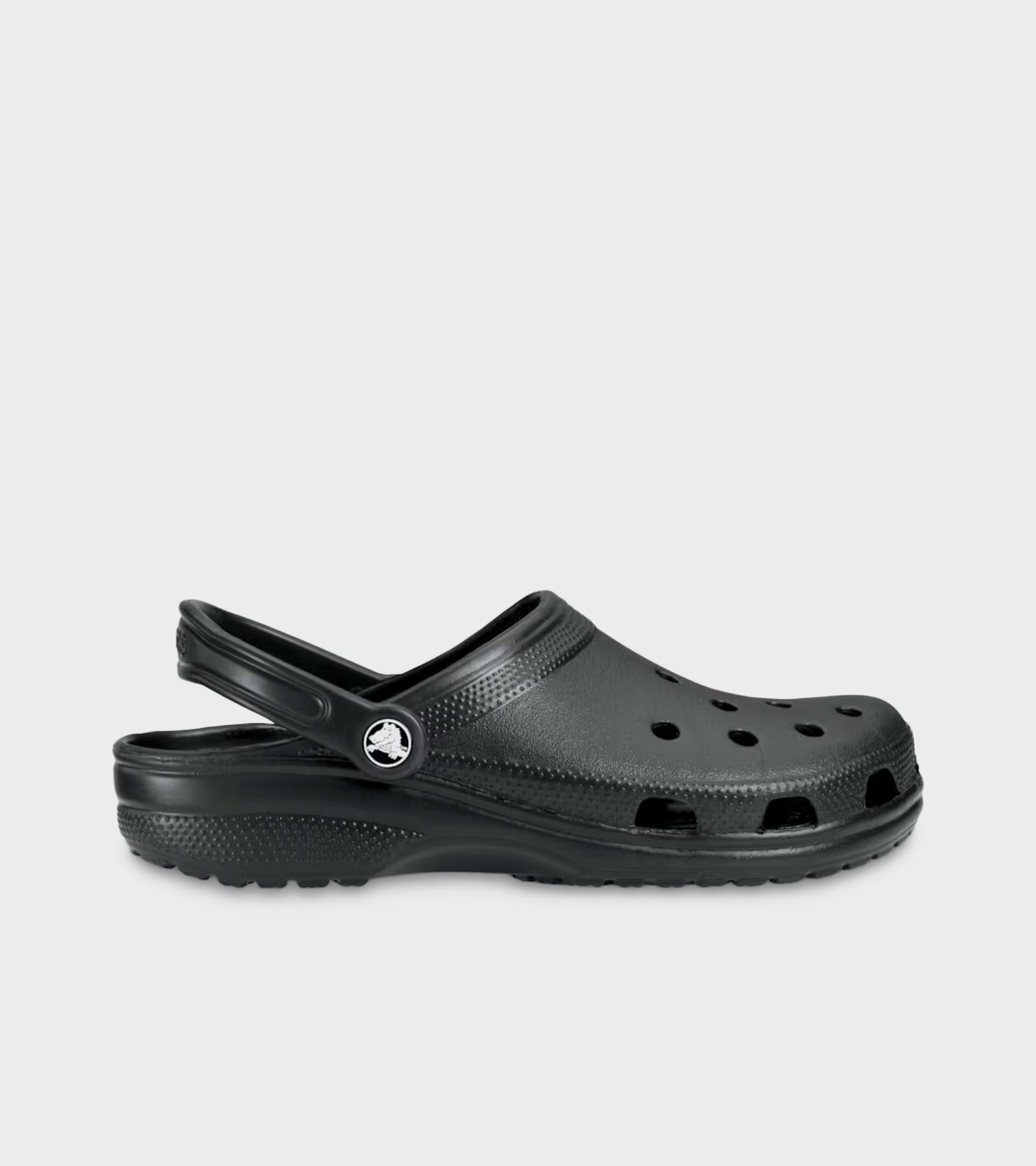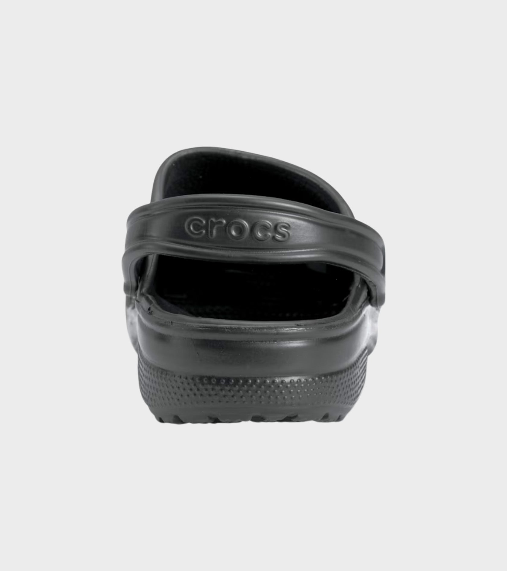 Classic Clog from Crocs. These shoes are made of Thermoplastic (EVA) and have a discreet logo on the back.
