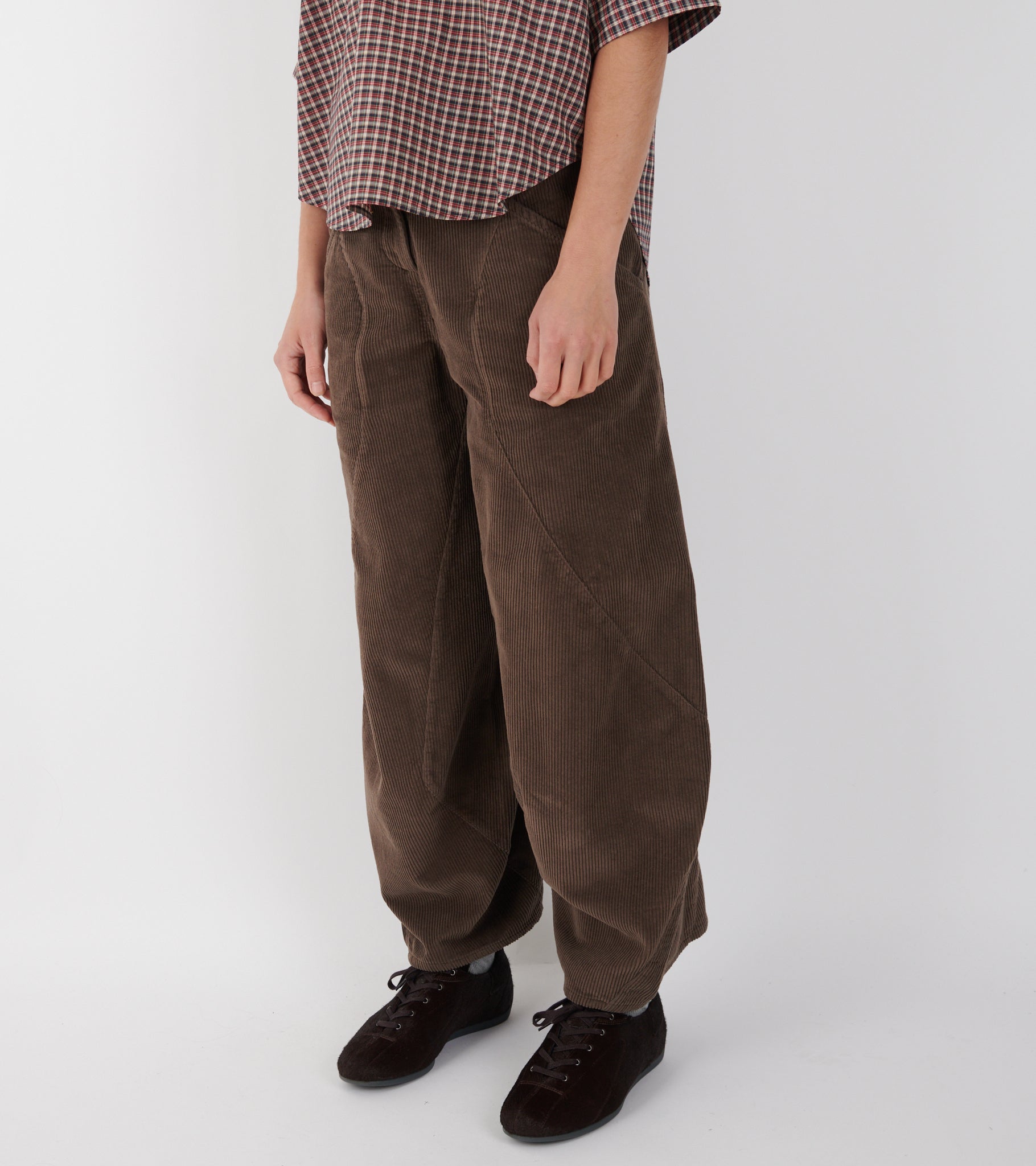 Brown trousers in organic cotton corduroy from Henrik Vibskov. Digi Corduroy Pant has a slanted pocket on each side, two back pockets and wide rounded legs.