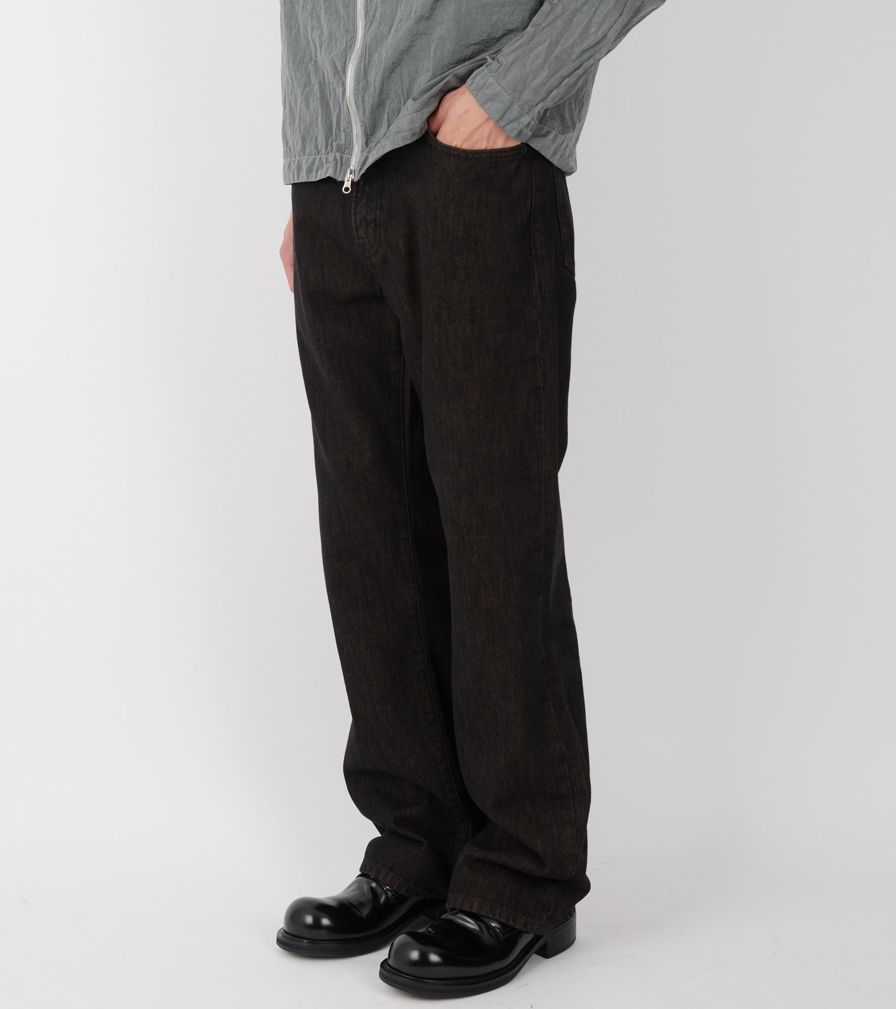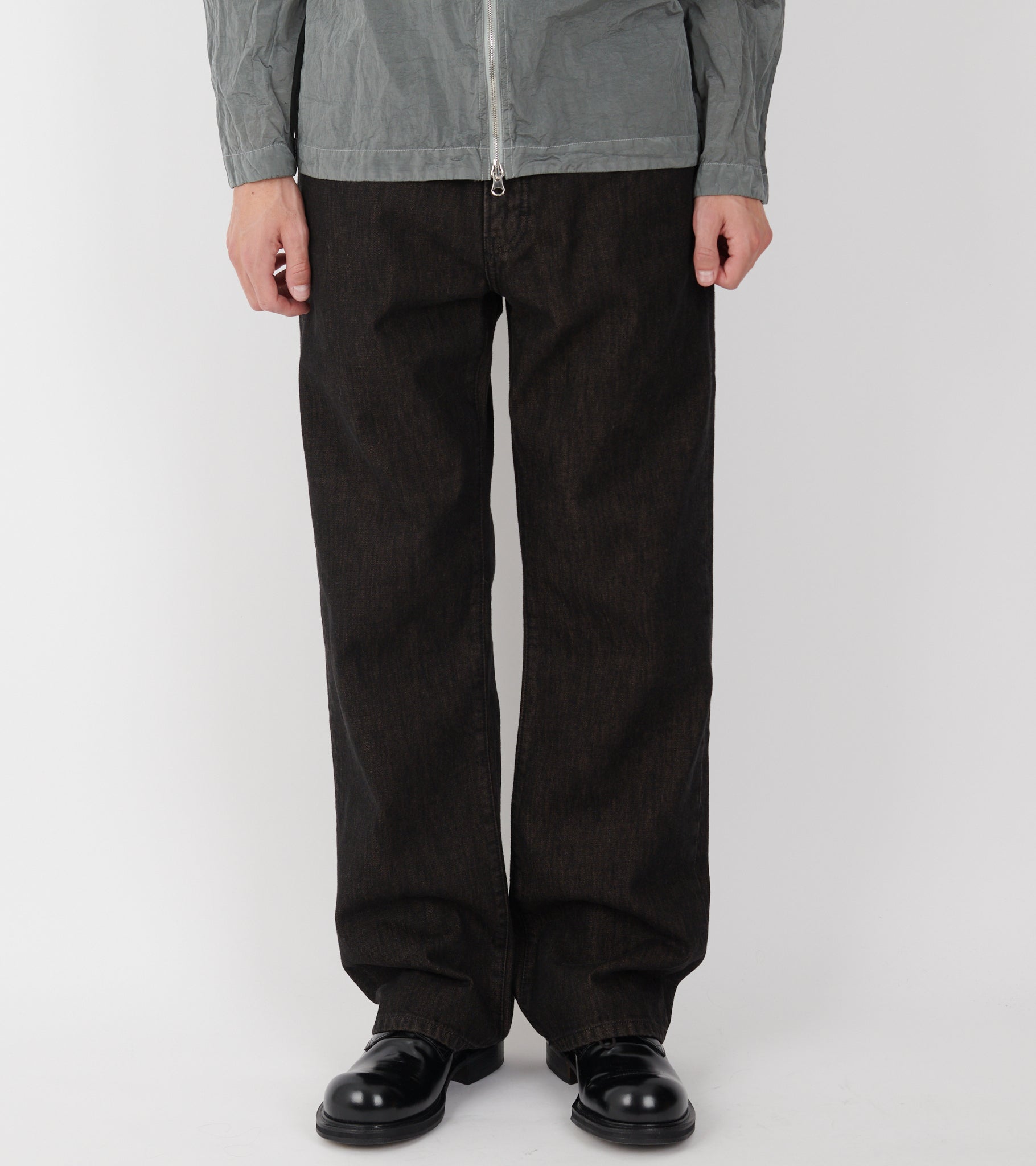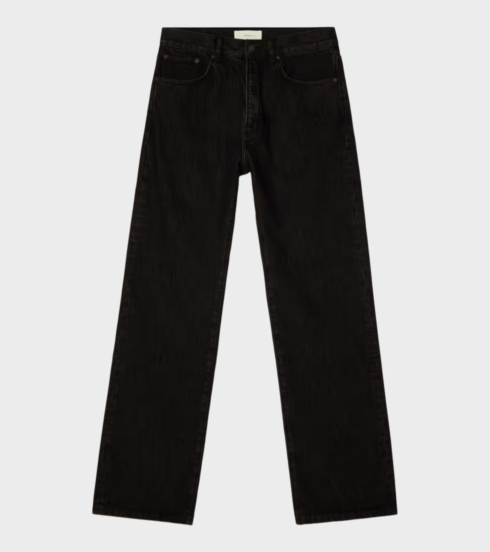 Black and brown denim jeans from Jeanerica. These jeans are made from a non-stretch cotton denim and have belt loops, three slant pockets and two back pockets. The fit is relaxed with wide straight legs.