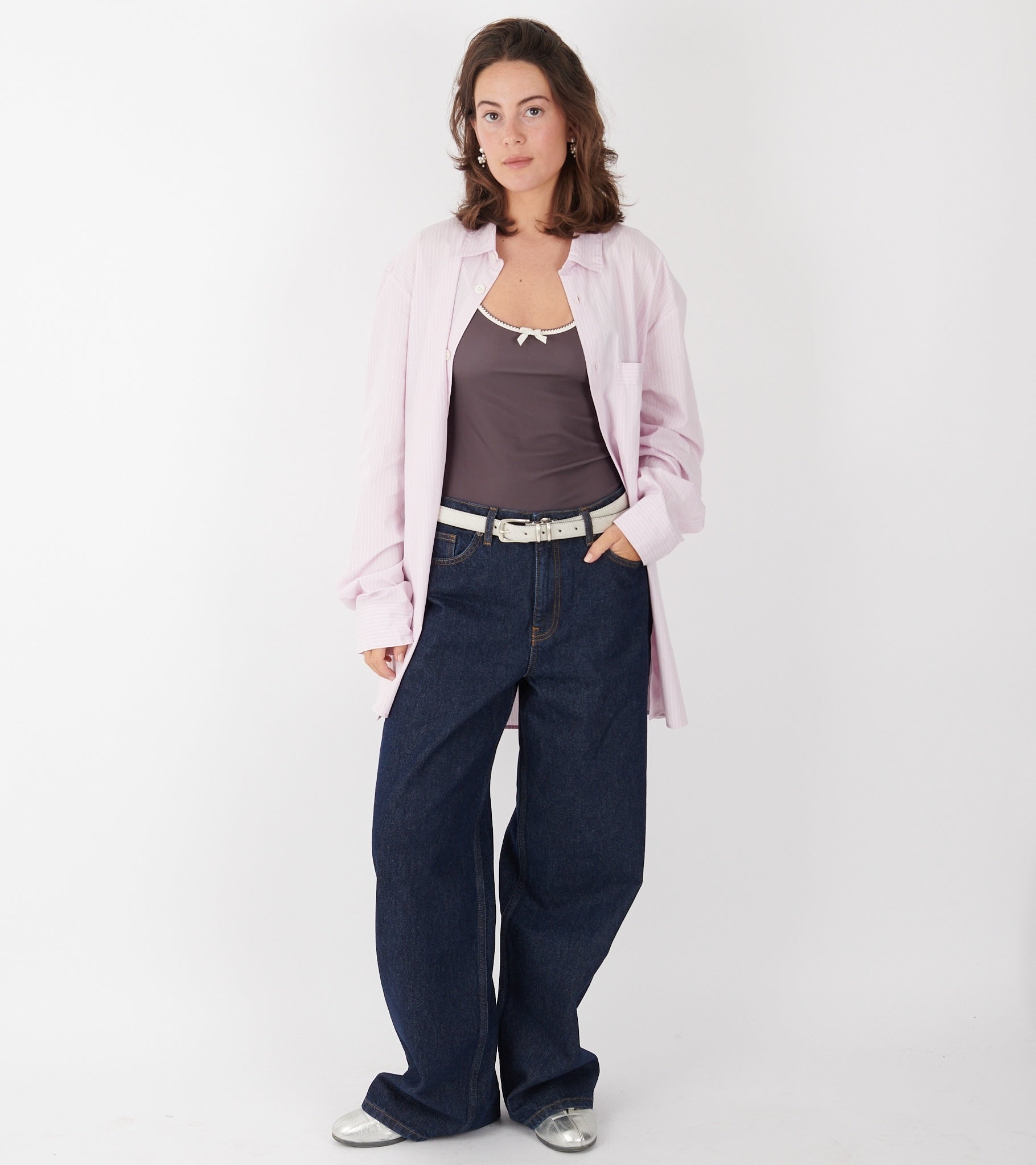 White/off-white pony belt with silver hardware from Molebo.