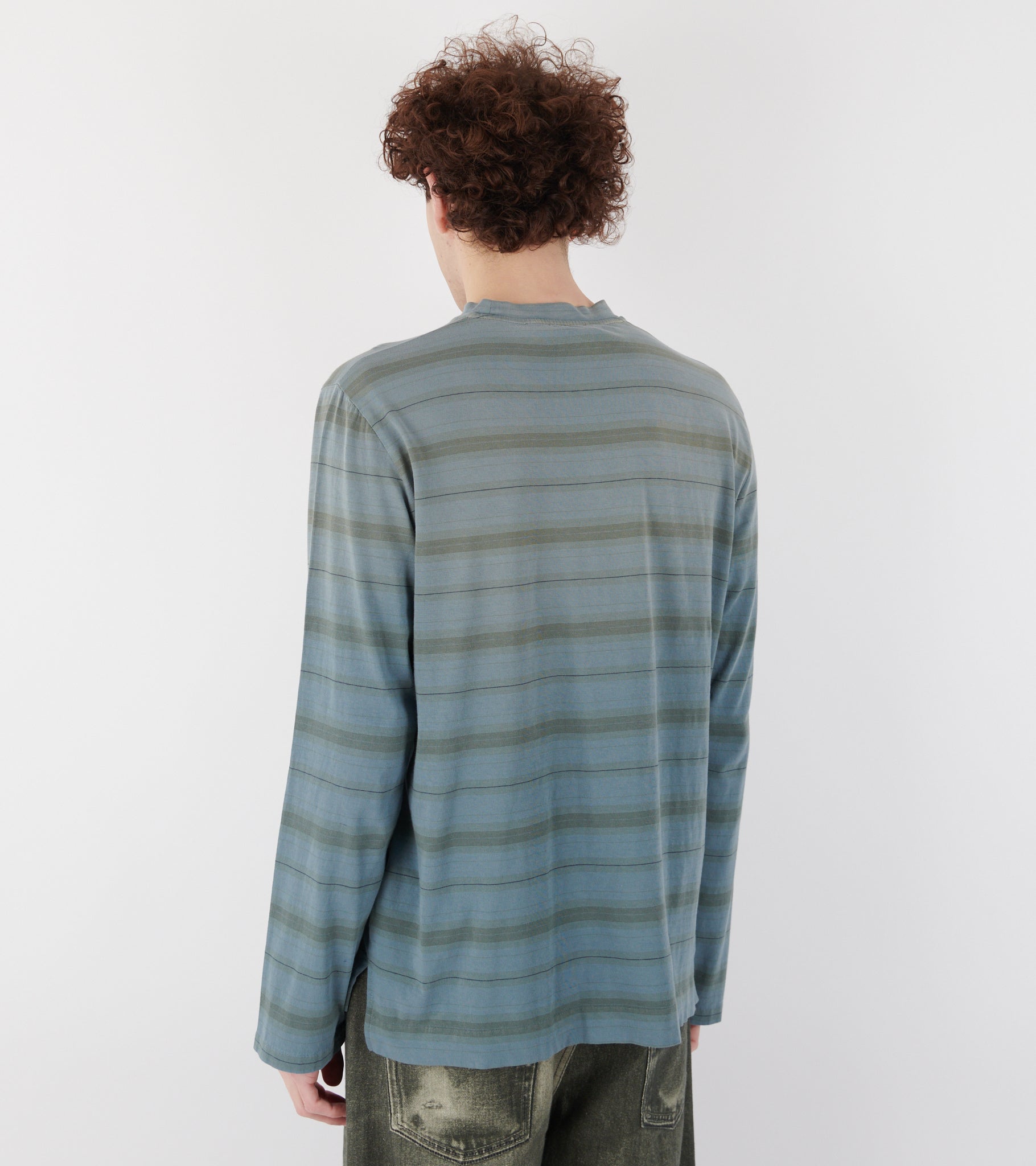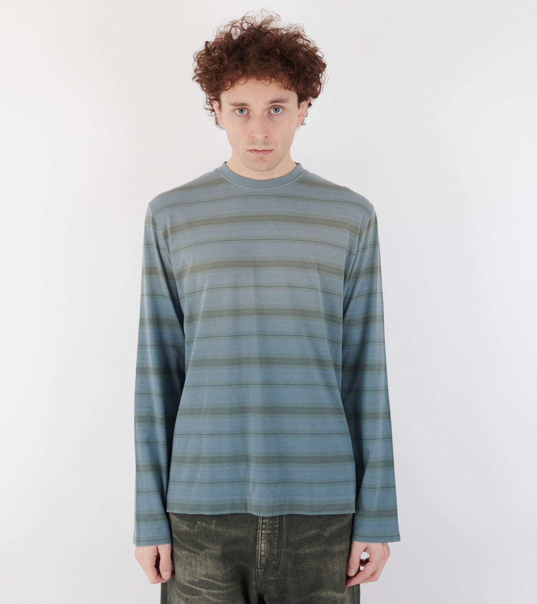 Striped long-sleeved t-shirt in pigment dyed cotton from Our Legacy. The t-shirt has a round neck and a small slit on each side.