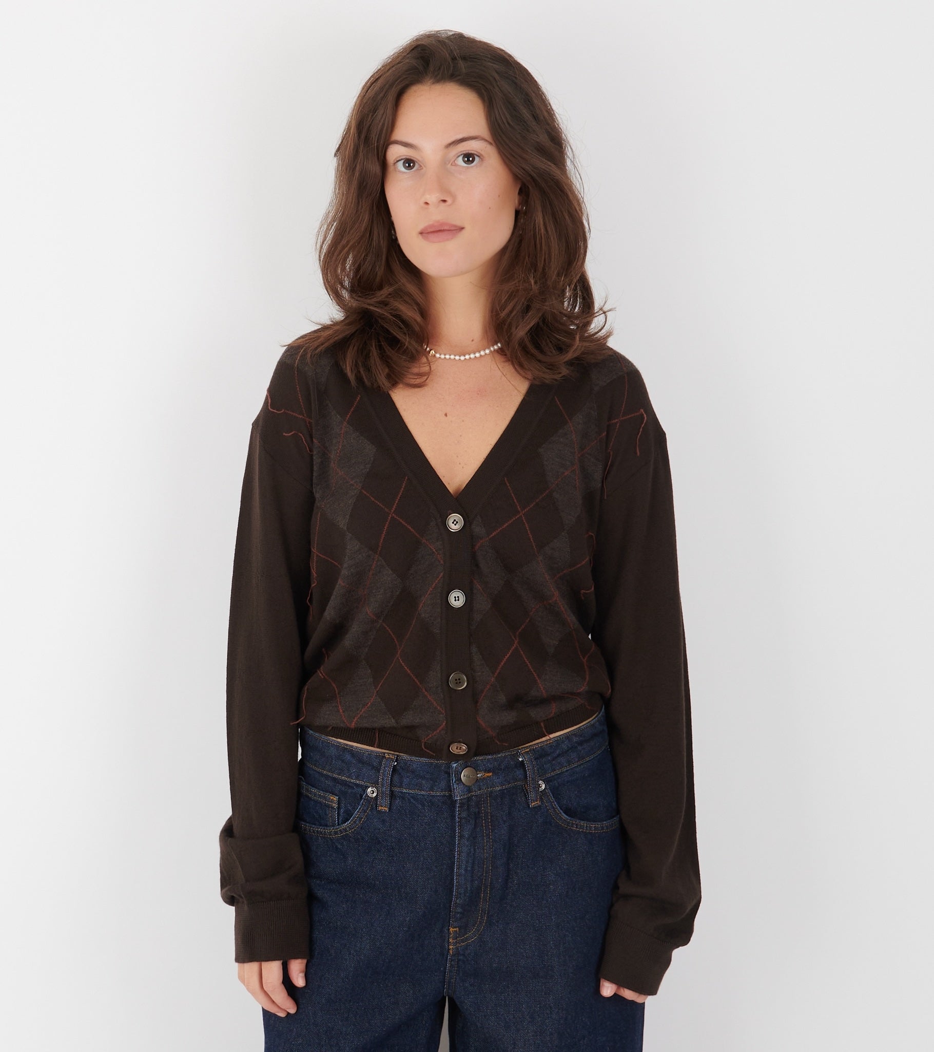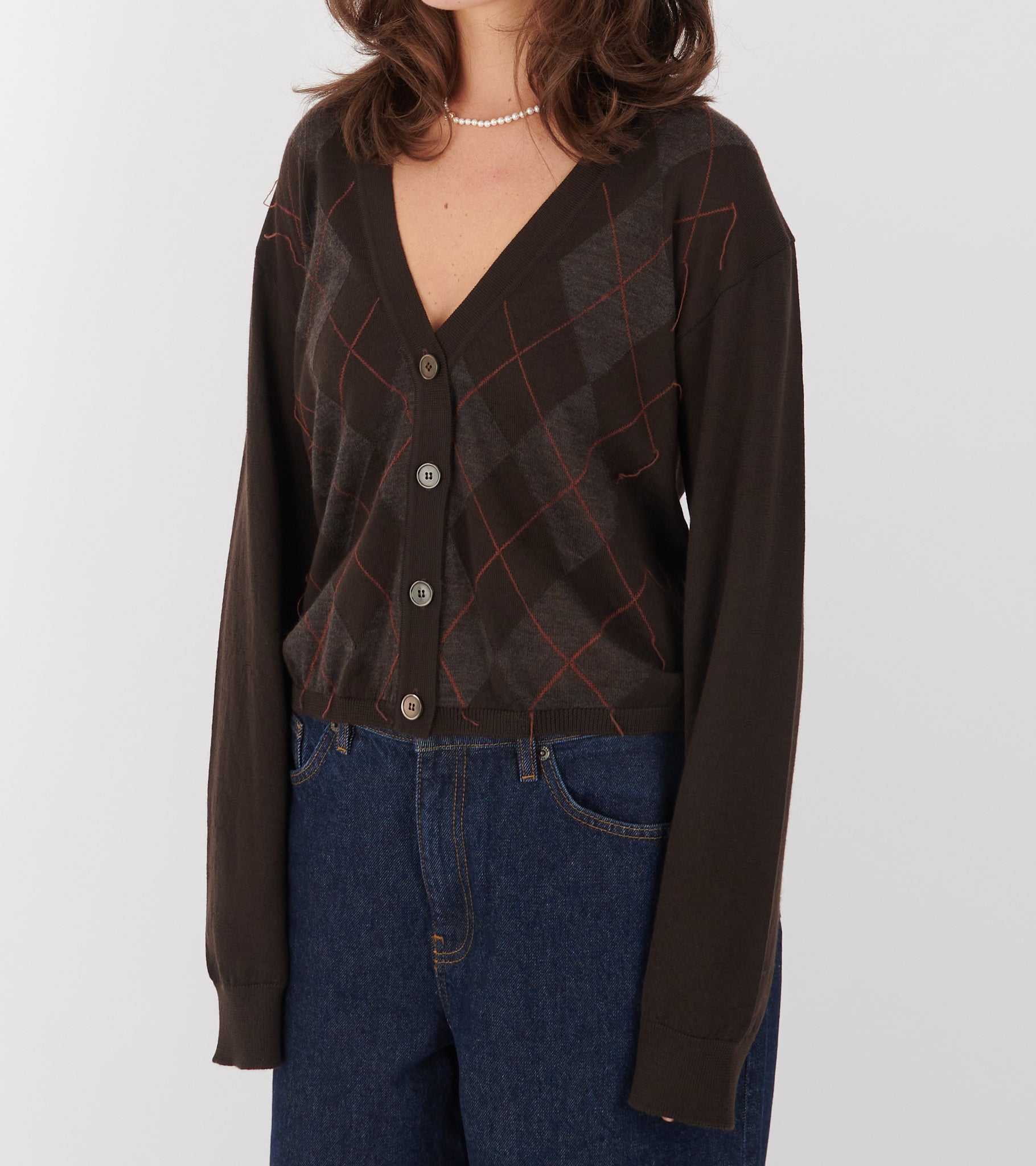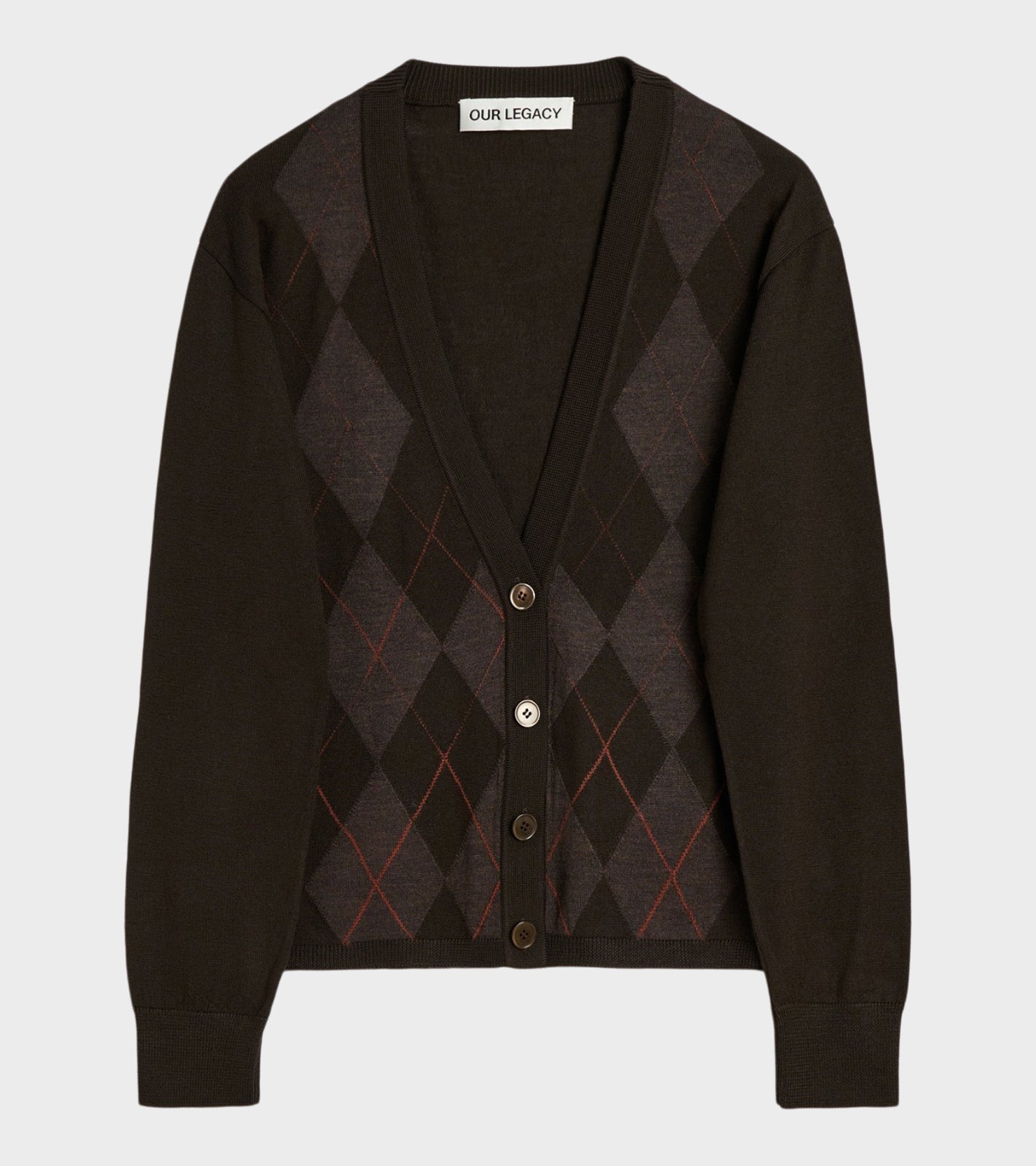 Brown cardigan with argyle pattern from Our Legacy.