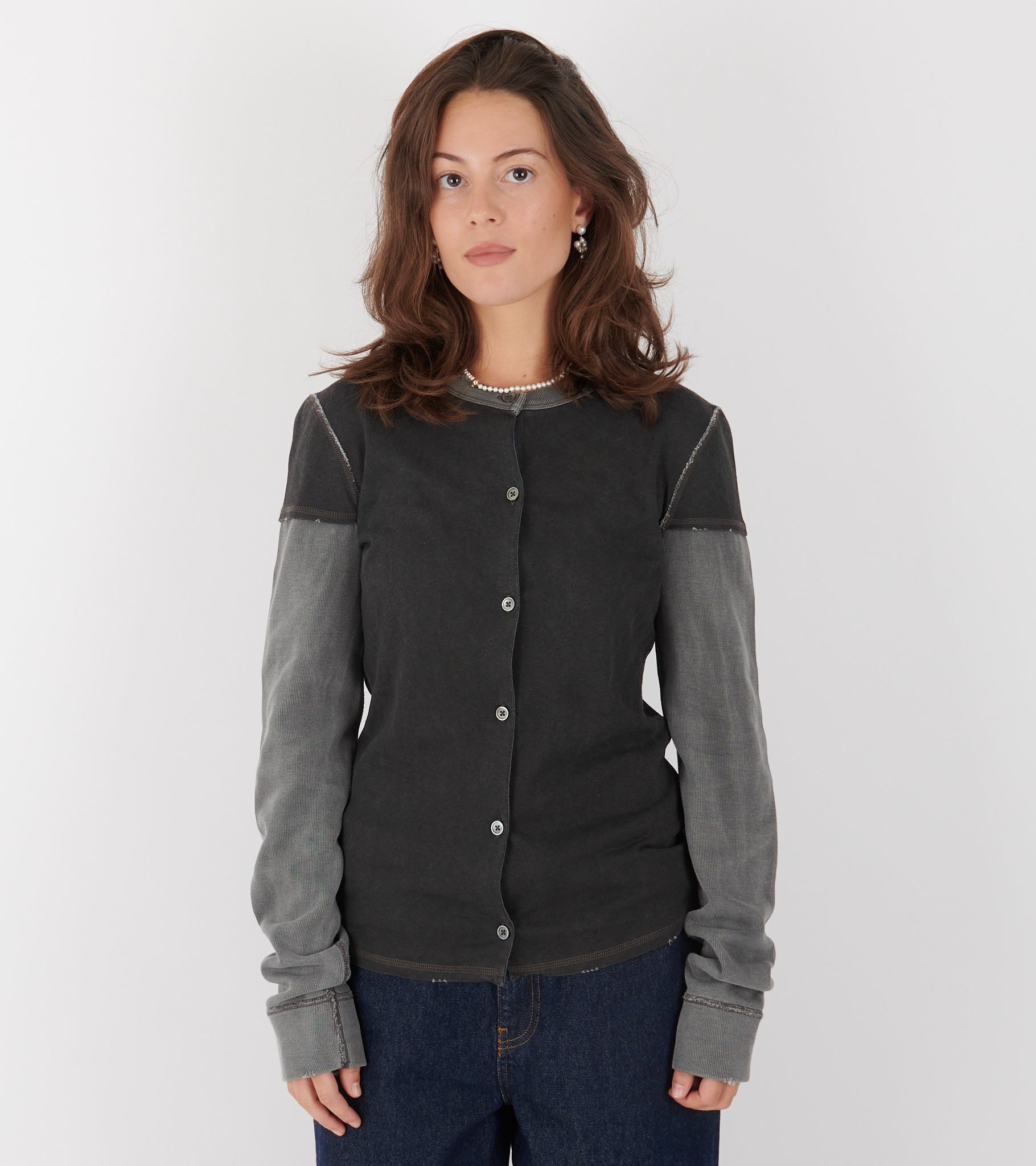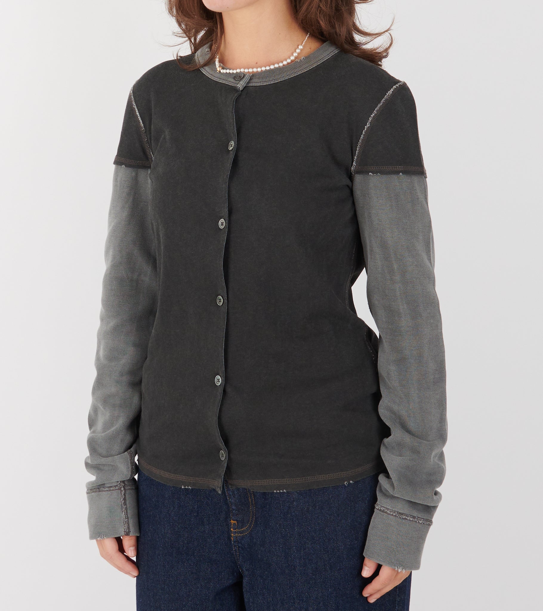 Long-sleeved t-shirt with a 'layered' design from Our Legacy. Heat Longsleeve has a round neck, a button closure on the front and distressed details.