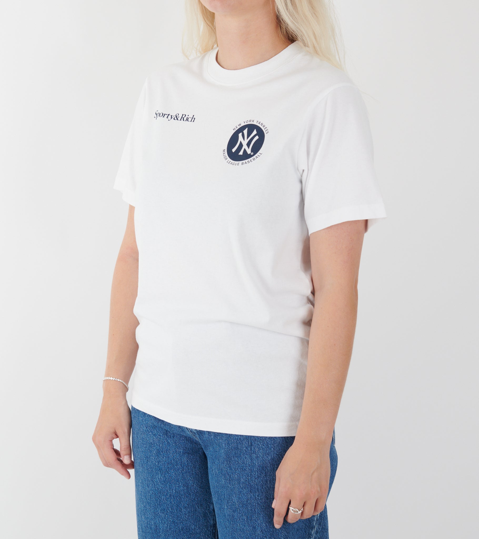 White t-shirt from Sporty & Rich in collaboration with New York Yankees.
