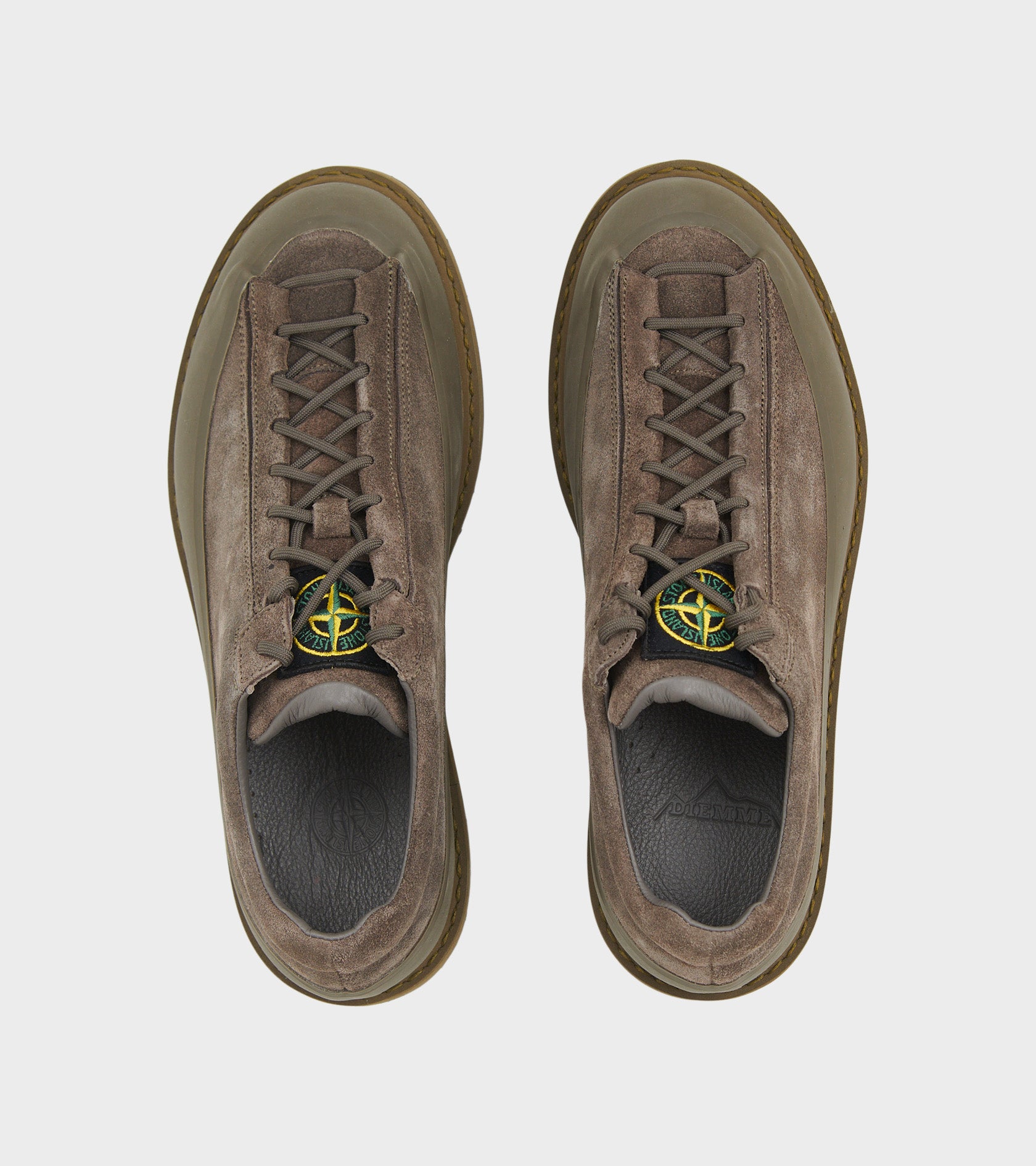 Olive green sneakers from Stone Island in collaboration with Diemme.