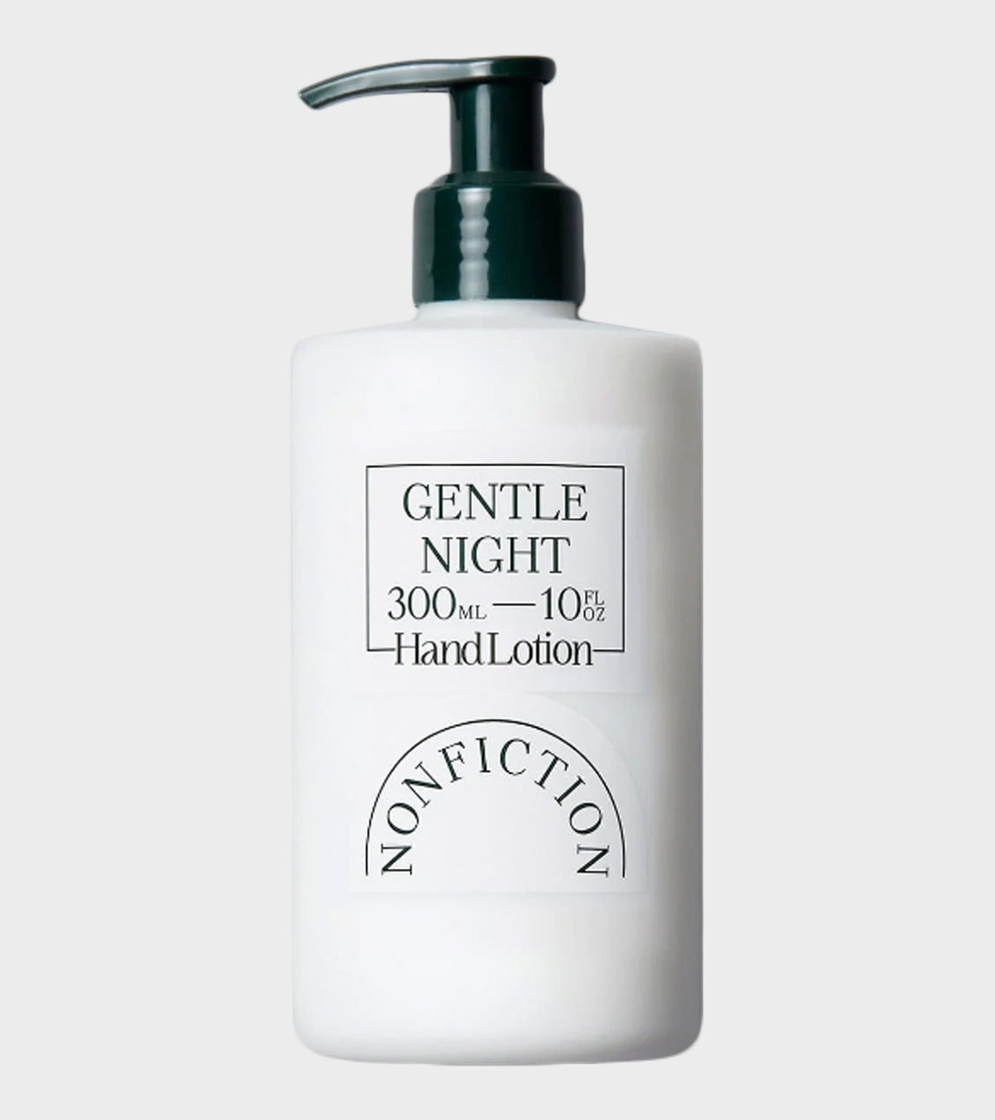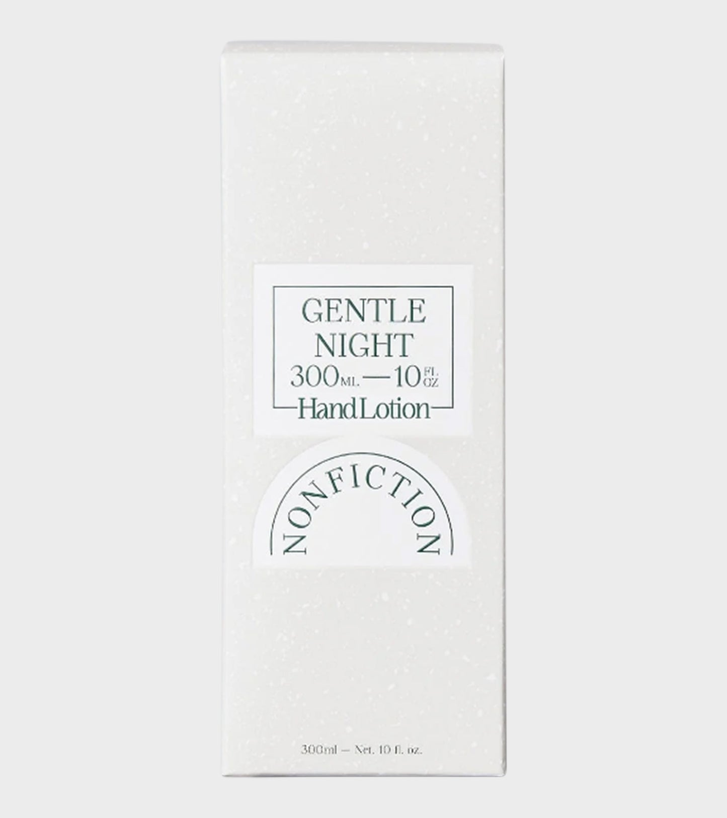 Gentle Night Hand Lotion from Nonfiction. This hand lotion is enriched with hyaluronic acid and shea butter to instantly moisturize the skin . It contains 300 ml and has fragrance notes of suede , white tea, figs, moss, cedar and musk .