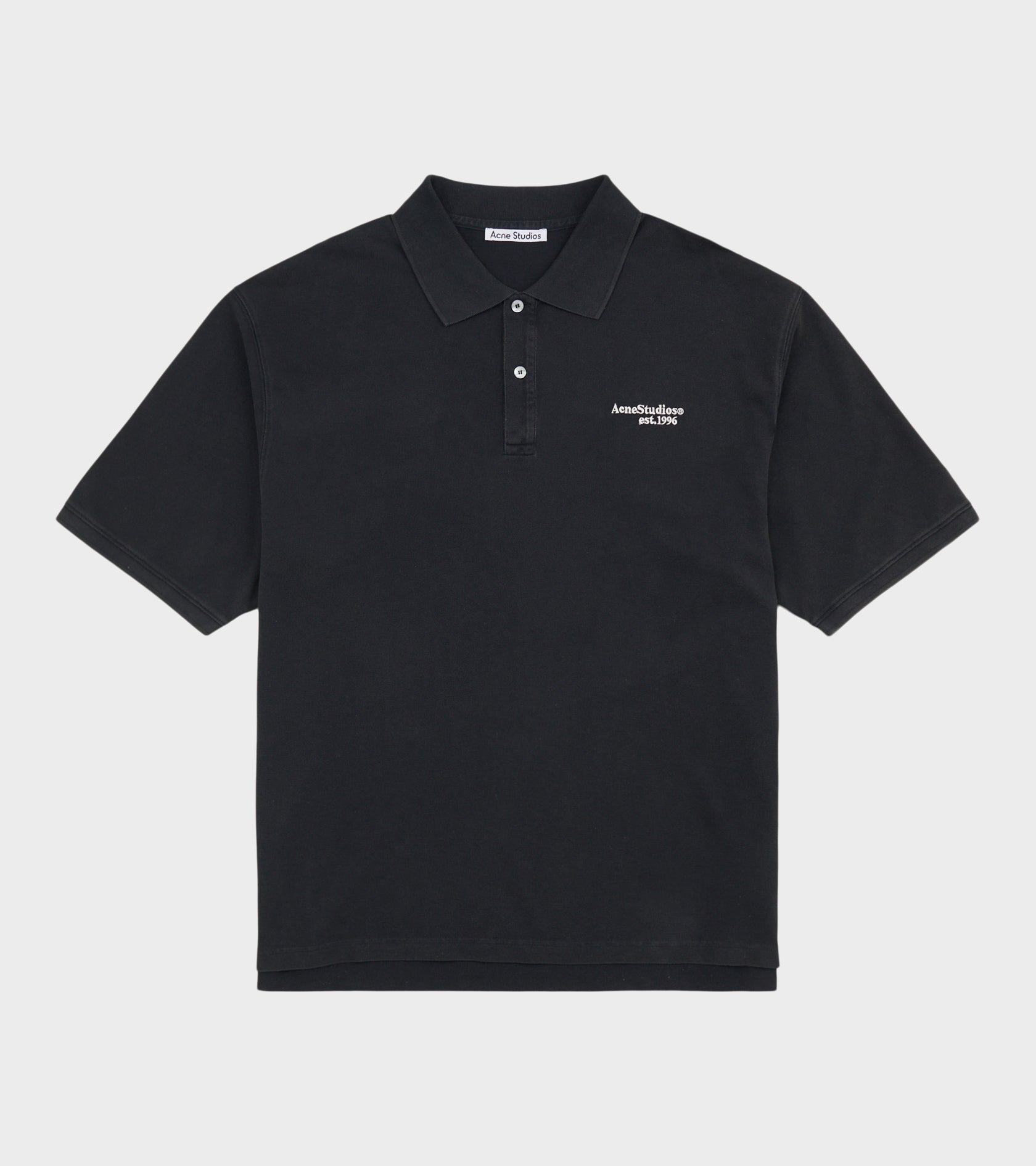 Short-sleeved polo shirt in a faded black shade from Acne Studios.