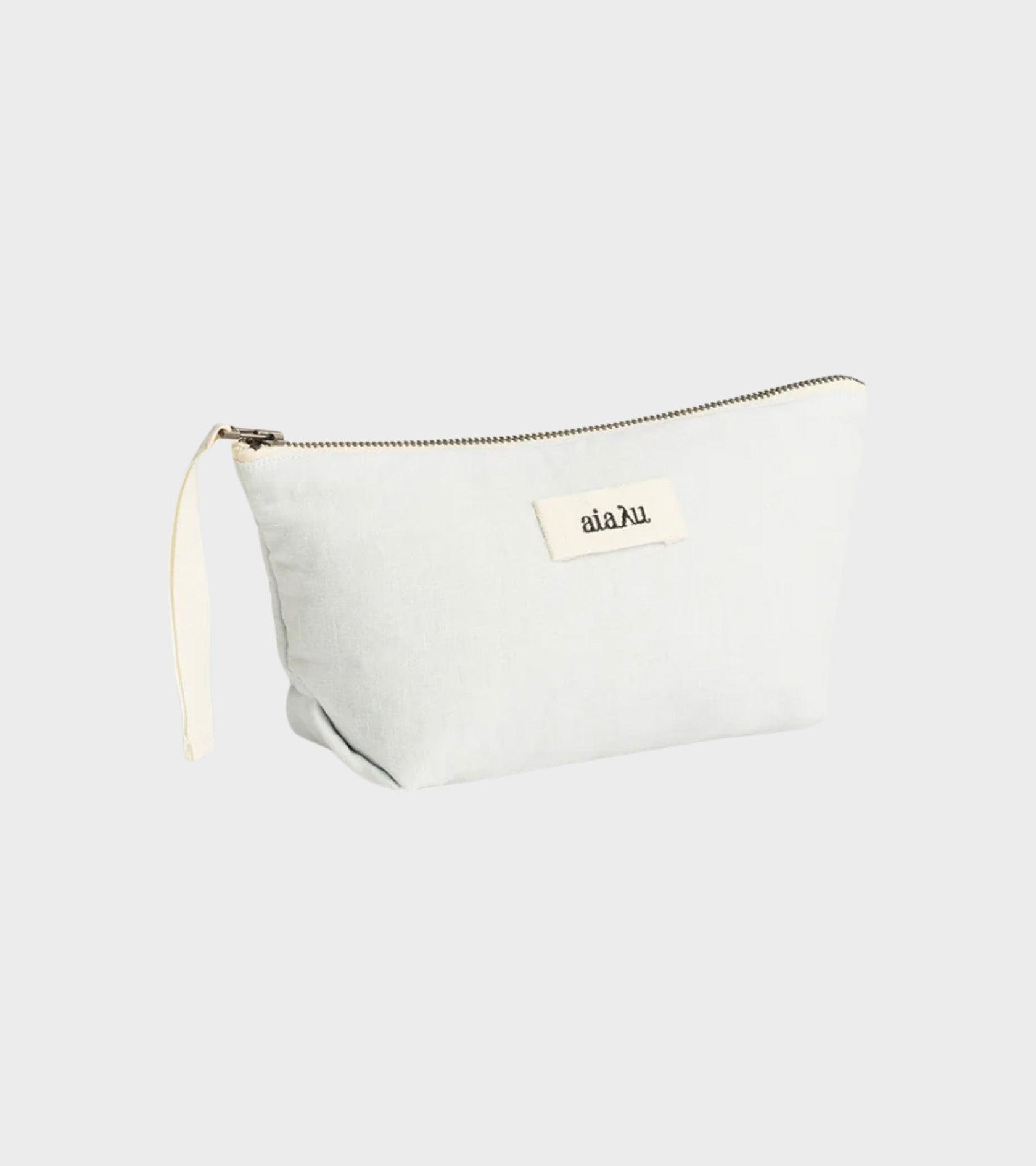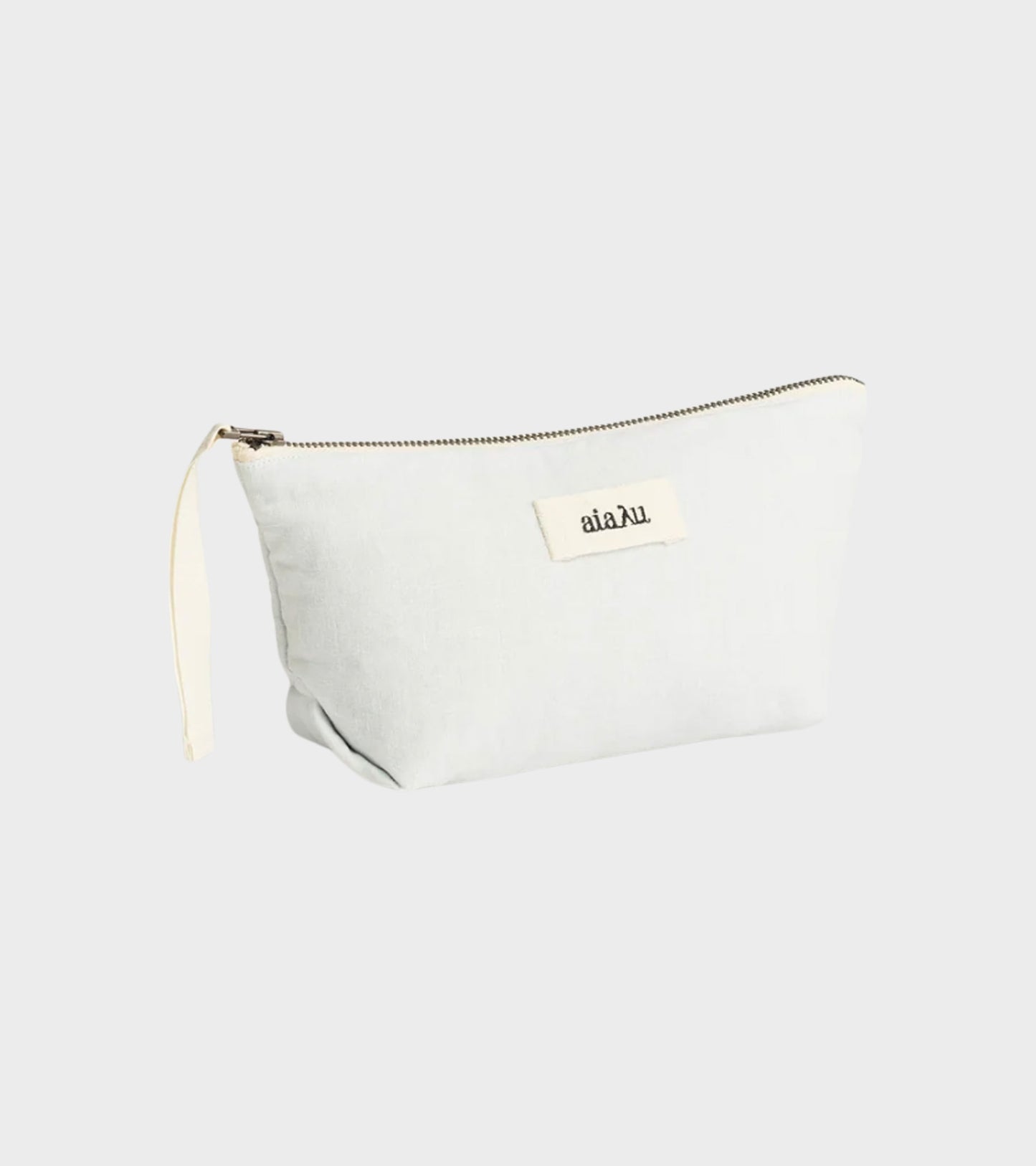 Small makeup pouch in the color 'Water' from Aiayu. Pouch Mini is an Aiayu classic and is perfect for storing makeup, toiletries, etc. This makeup pouch has a small Aiayu logo on the front and is made of linen.