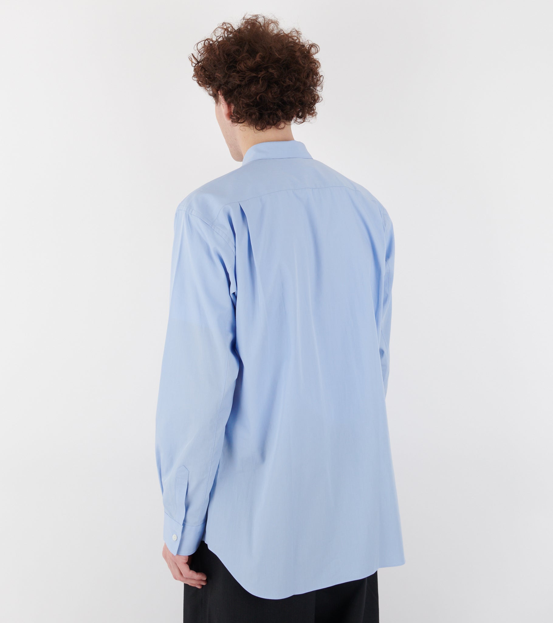 Light blue shirt with striped patchwork details on the front from Comme des Garcons Shirt. The shirt is made of cotton poplin.
