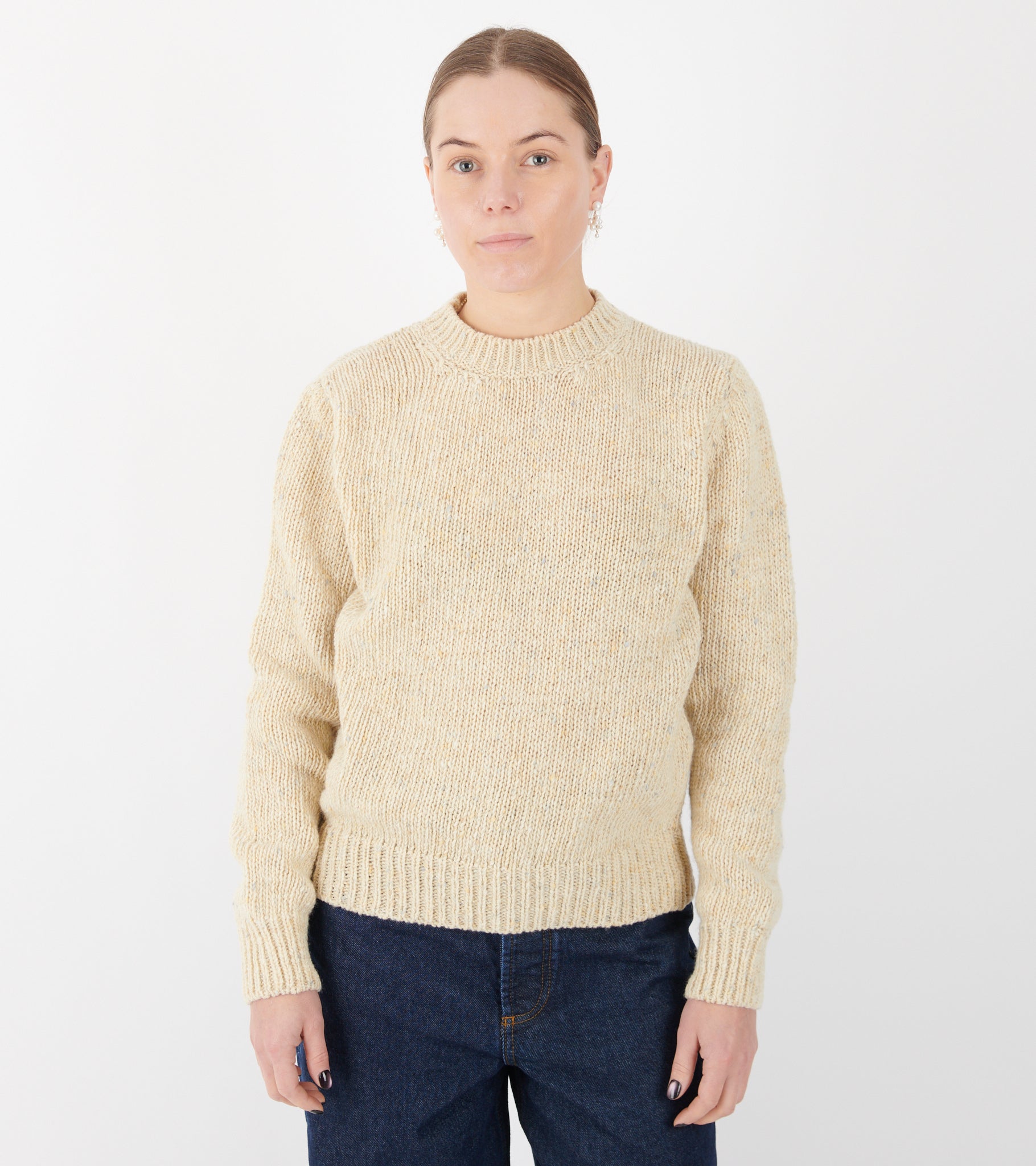 Beige melange hand-knitted crewneck in 100% 'donegal' wool from &Daughter.