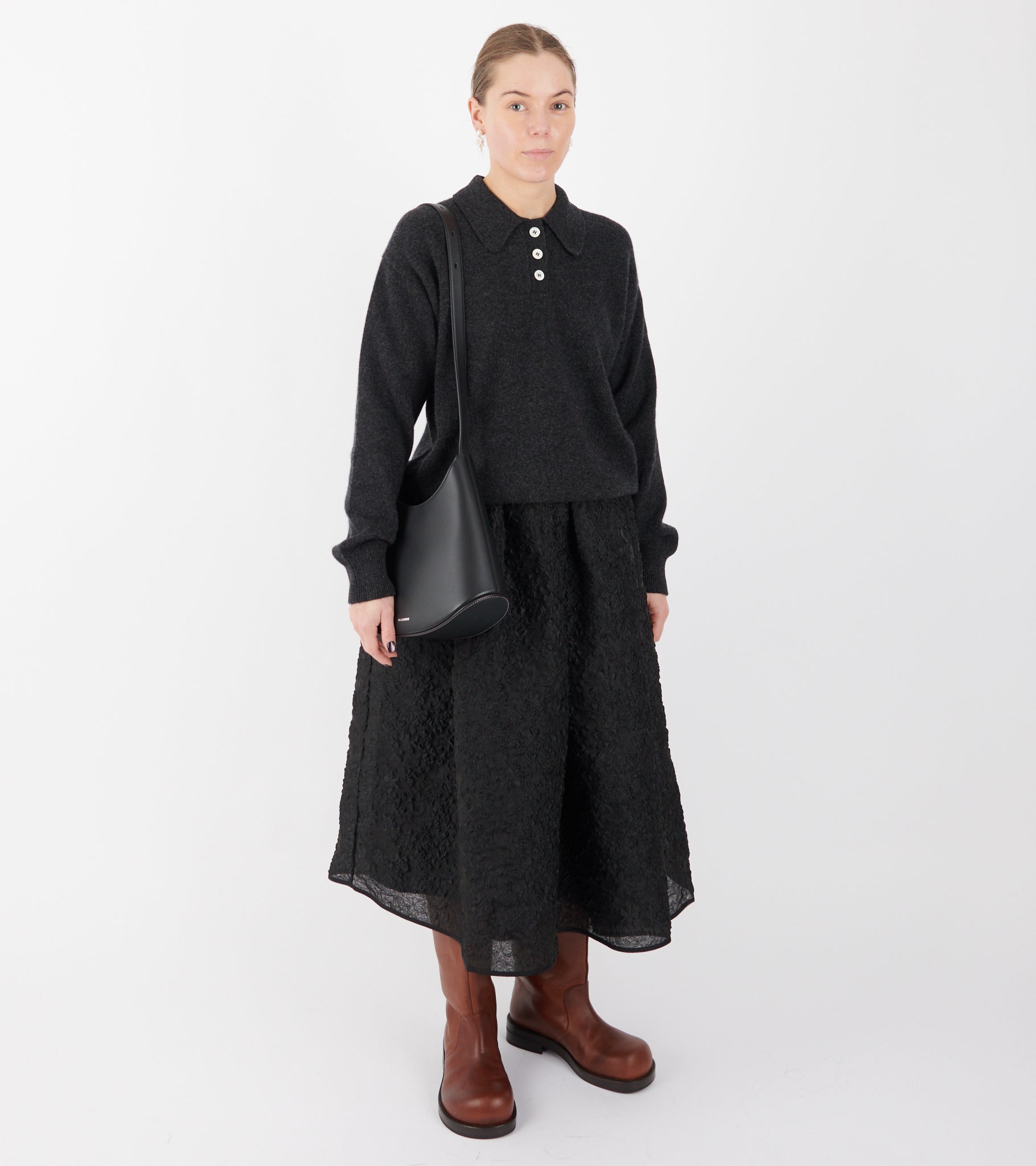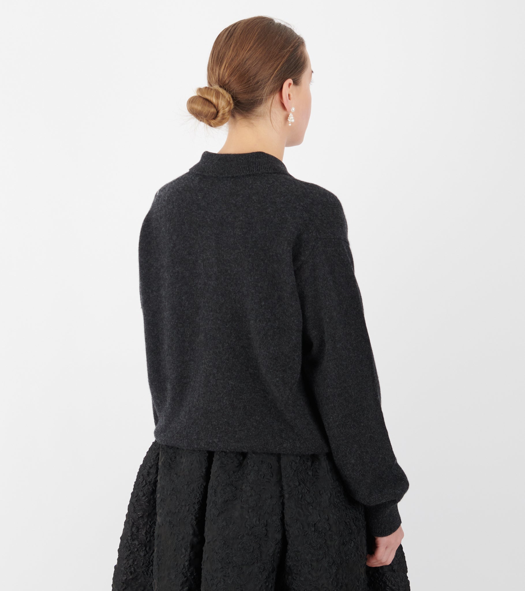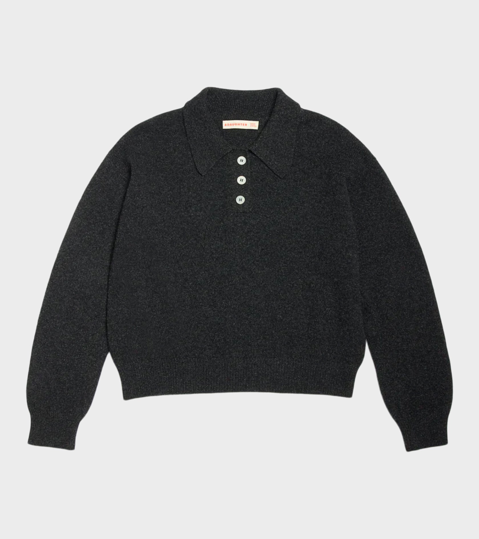 Dark grey knit polo in 'Geelong' lambswool from &Daughter.