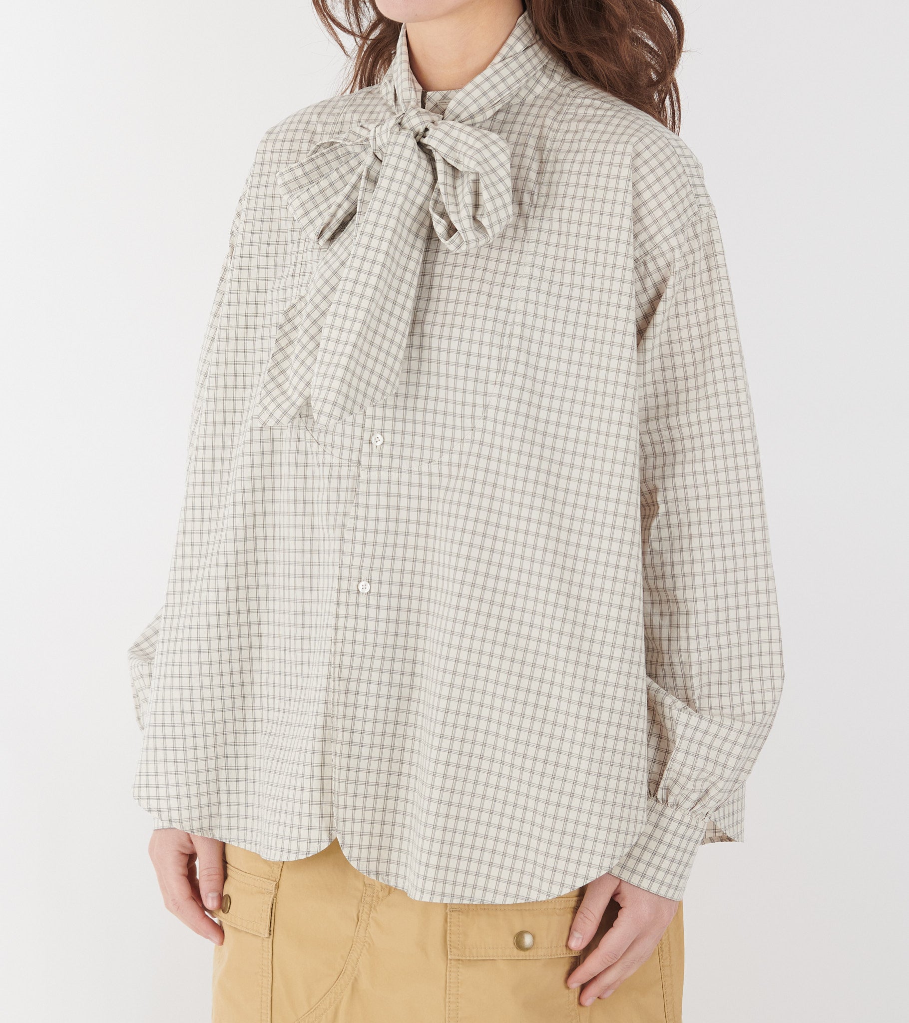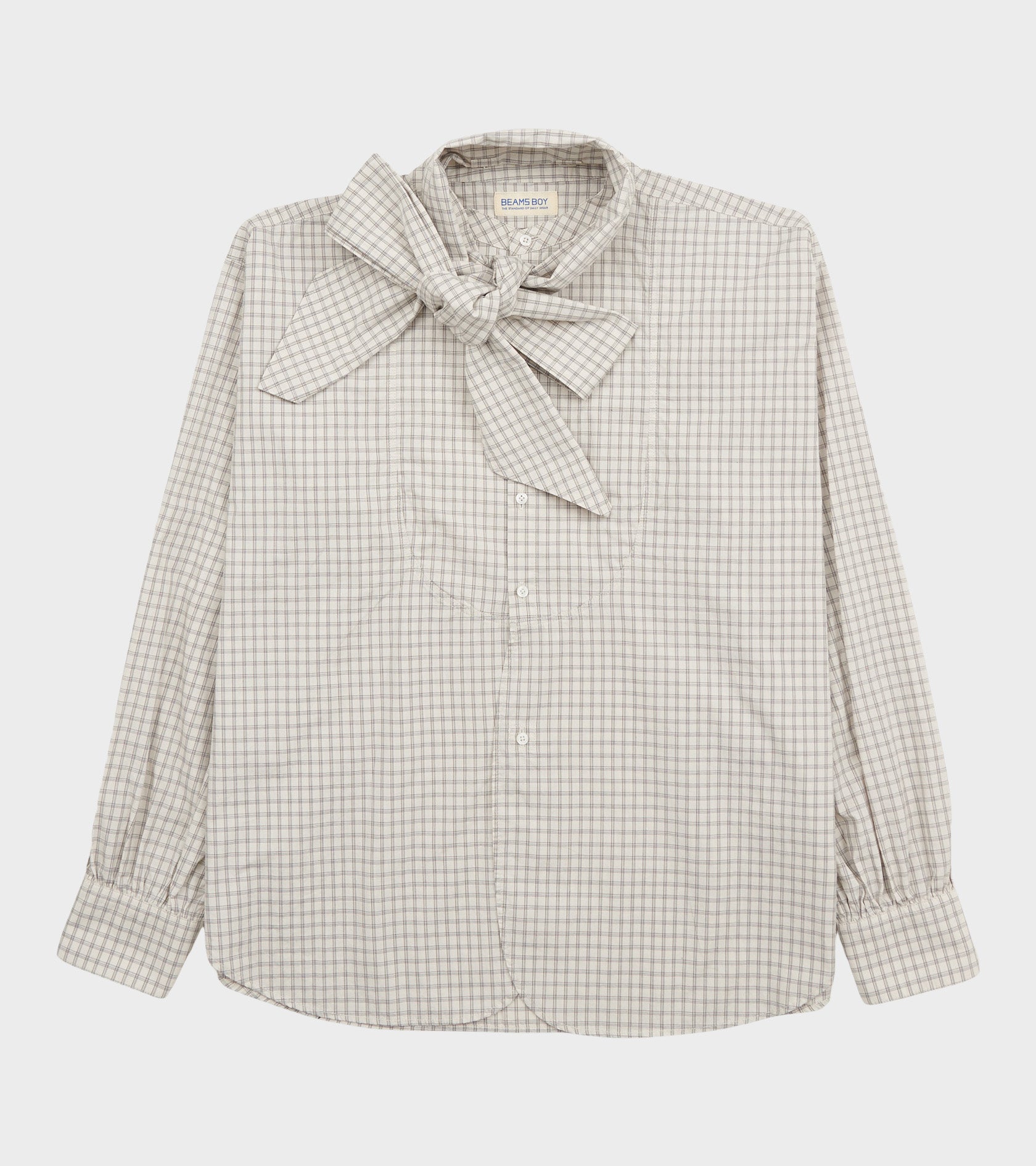 Checkered shirt in off-white with a removable tie from Beams Boy.