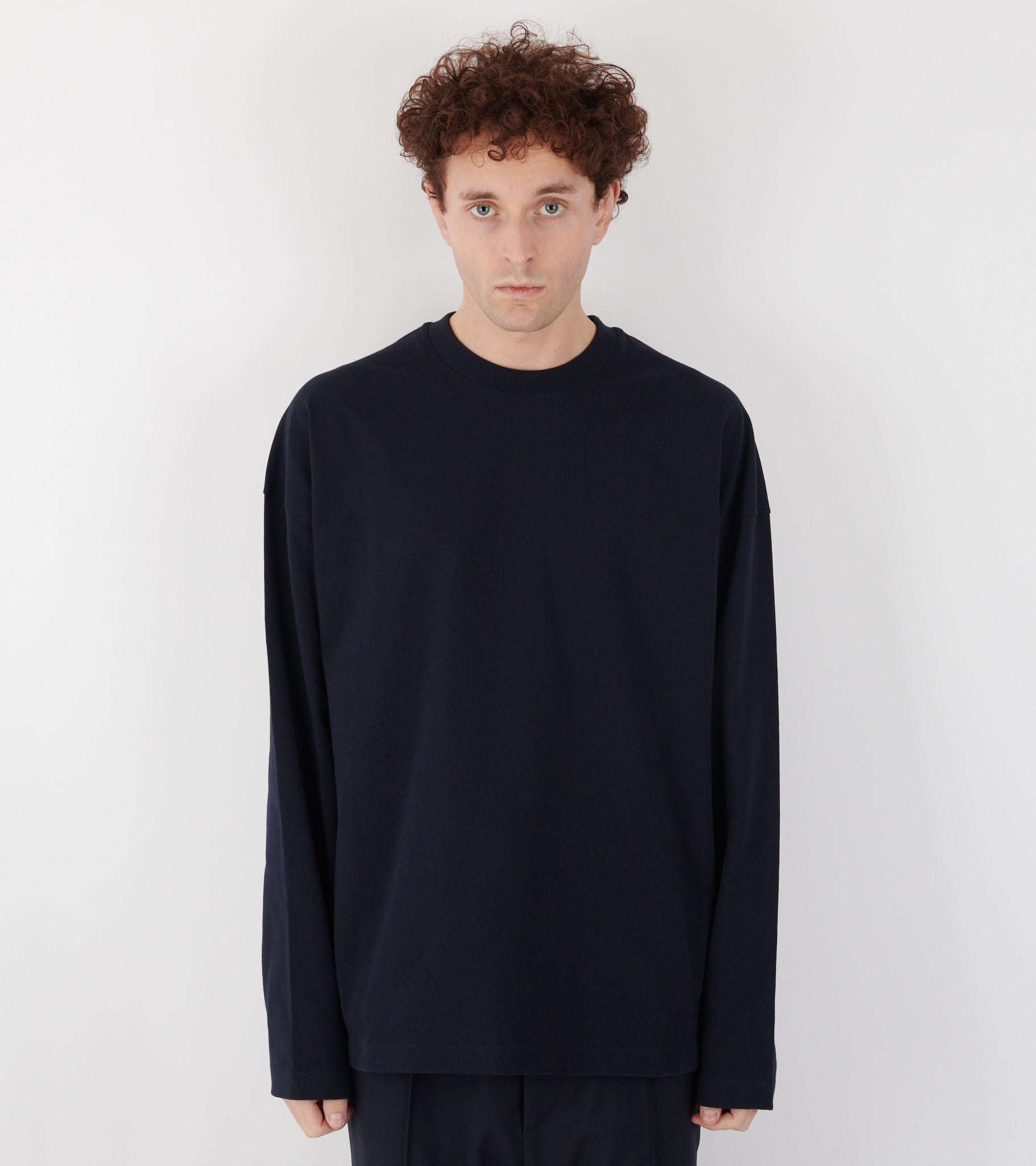 Long-sleeved navy t-shirt in a heavy and slightly stiff cotton quality from Jil Sander.