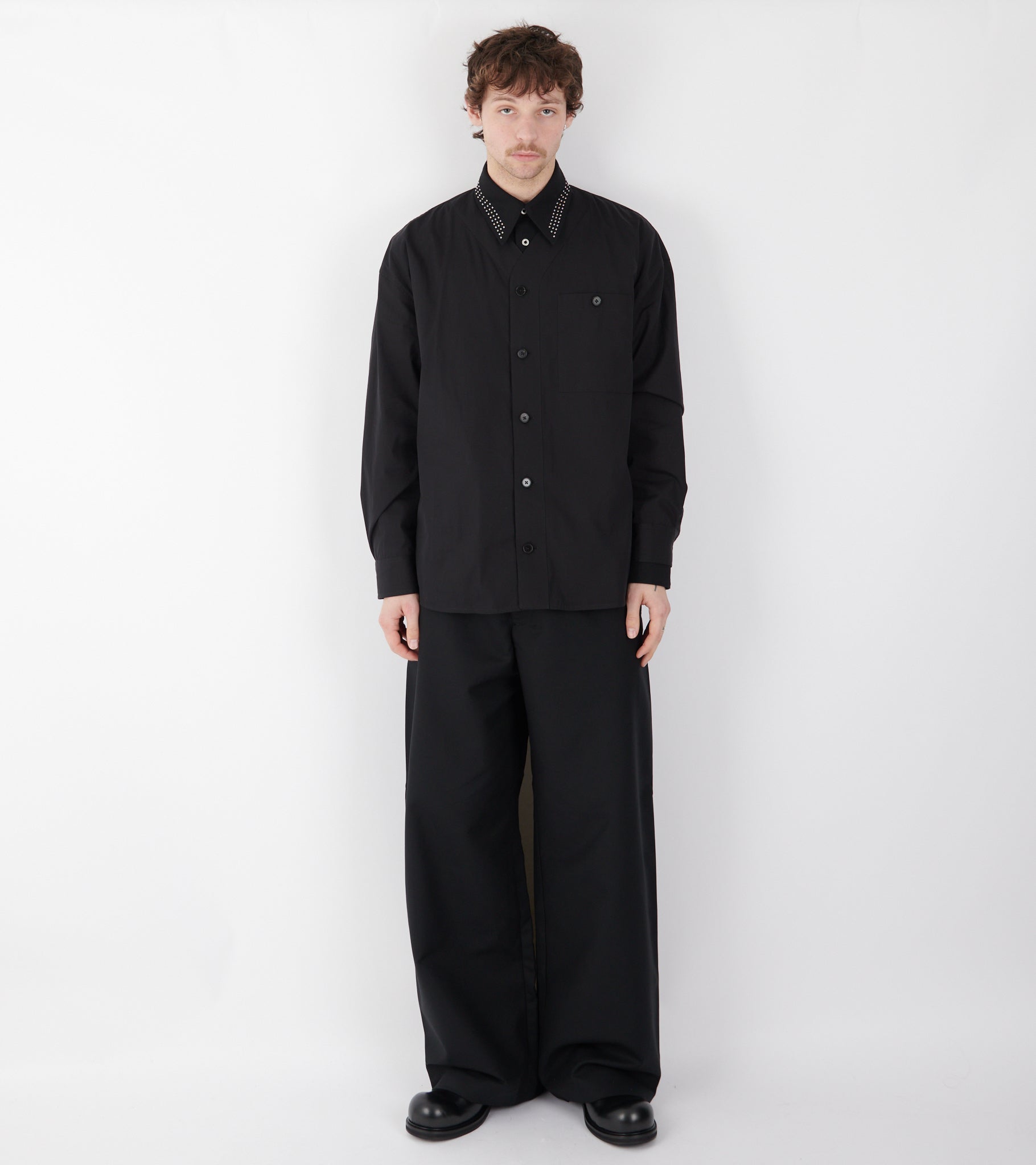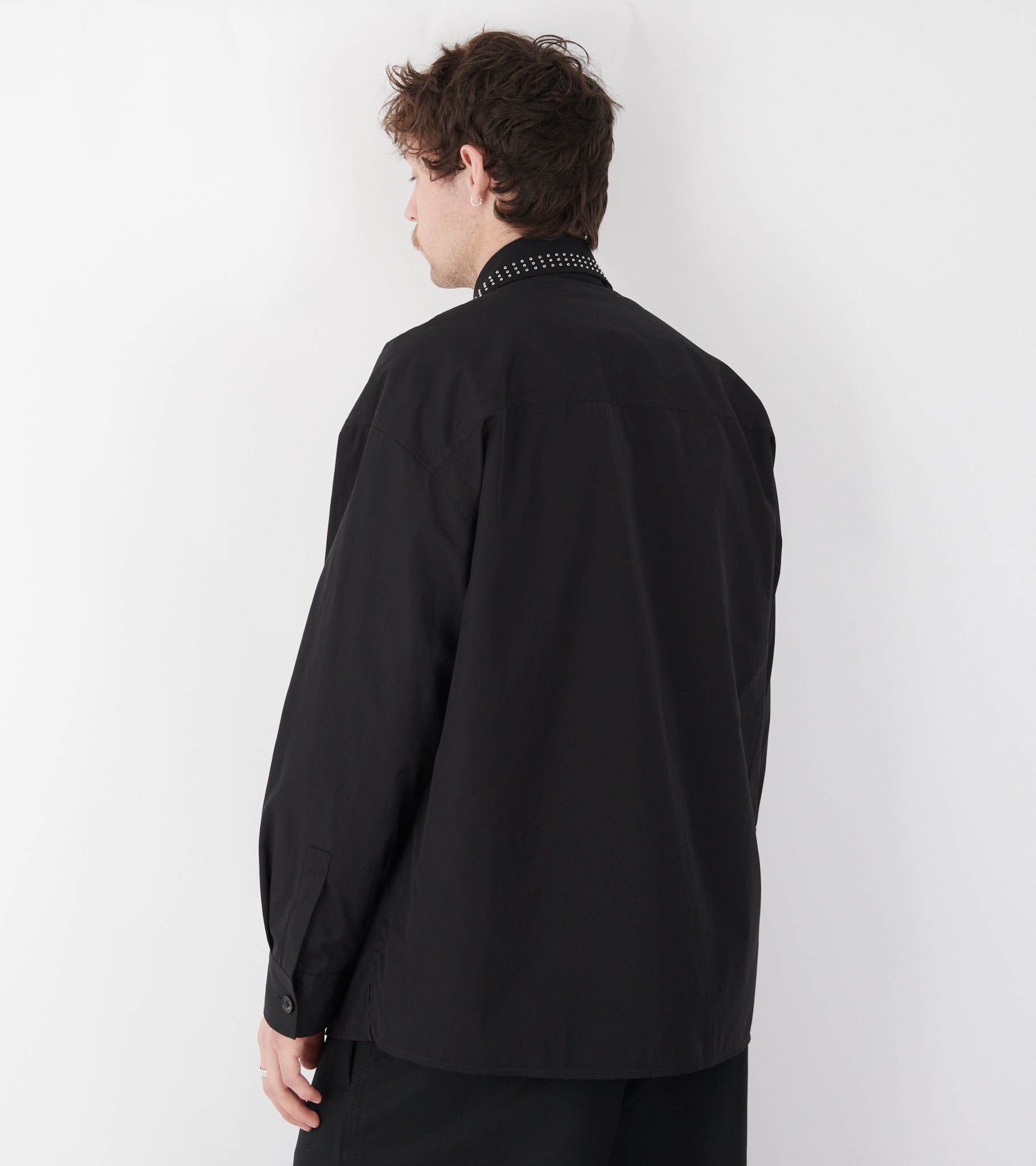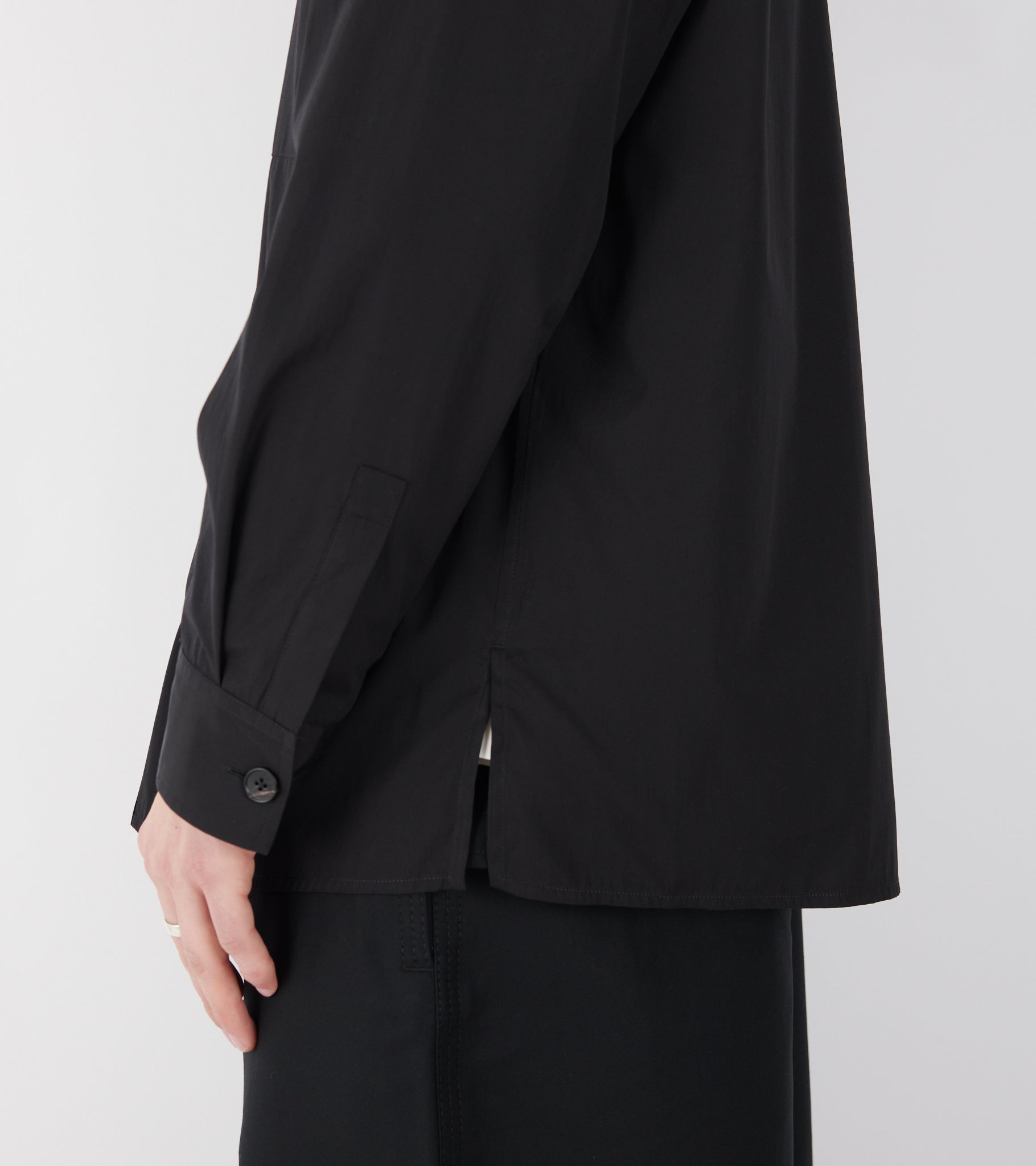 Black shirt in cotton poplin from Jil Sander. The shirt has a v-neck, a button closure, a chest pocket, cufflinks and dropped shoulders.