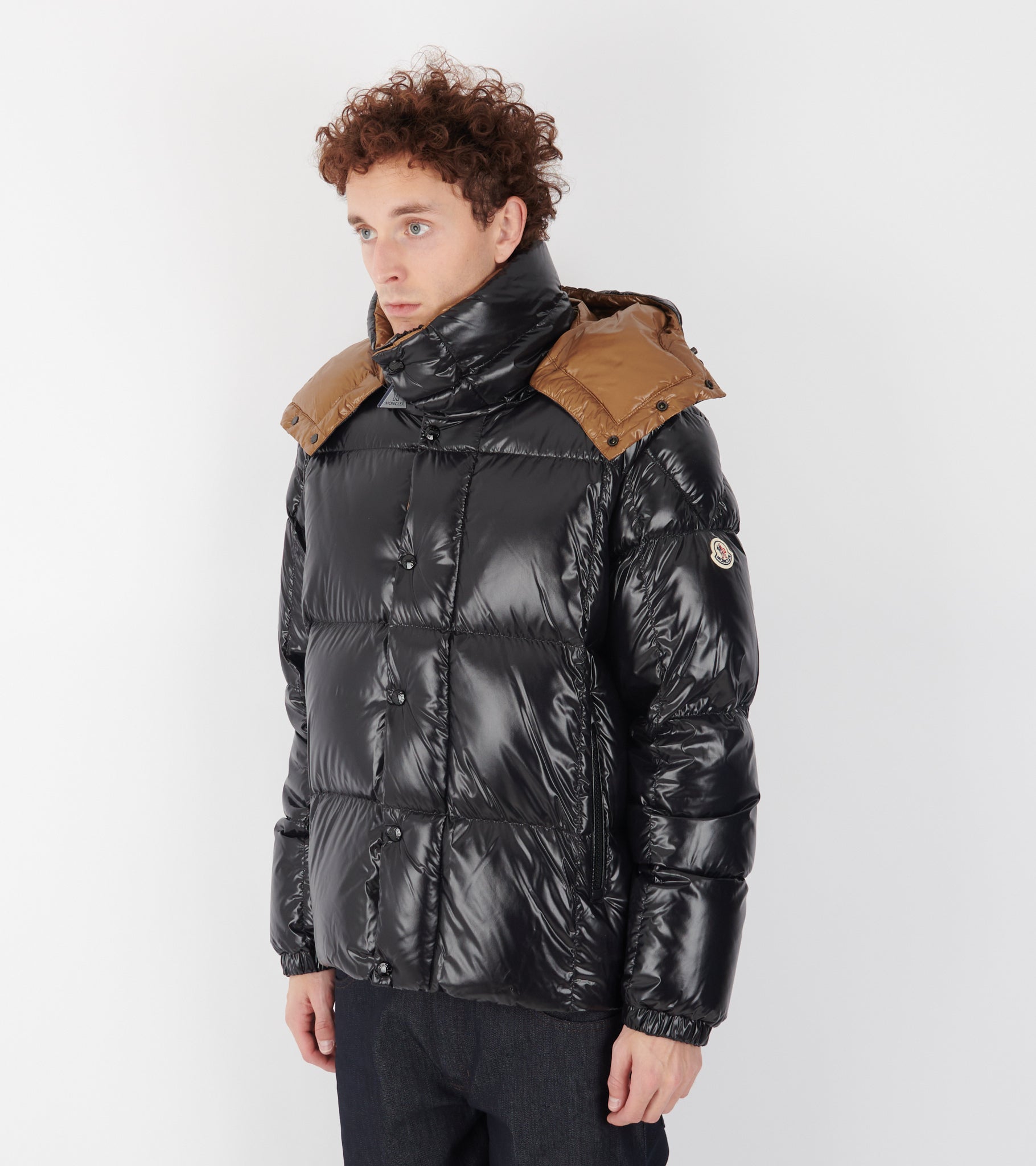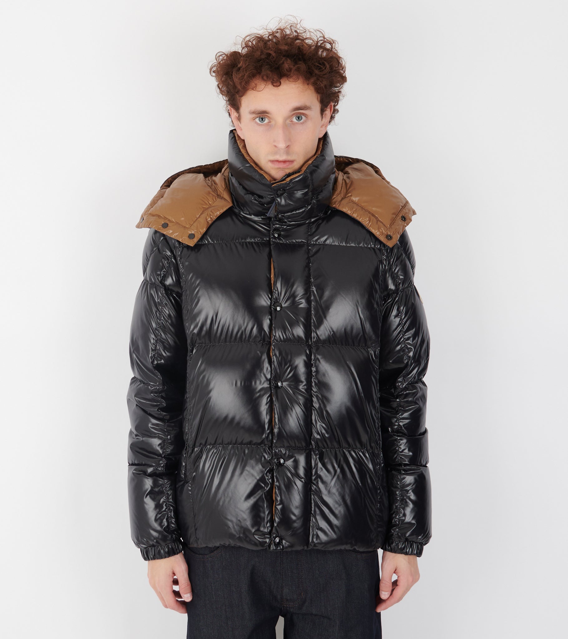 Black down jacket from Moncler.