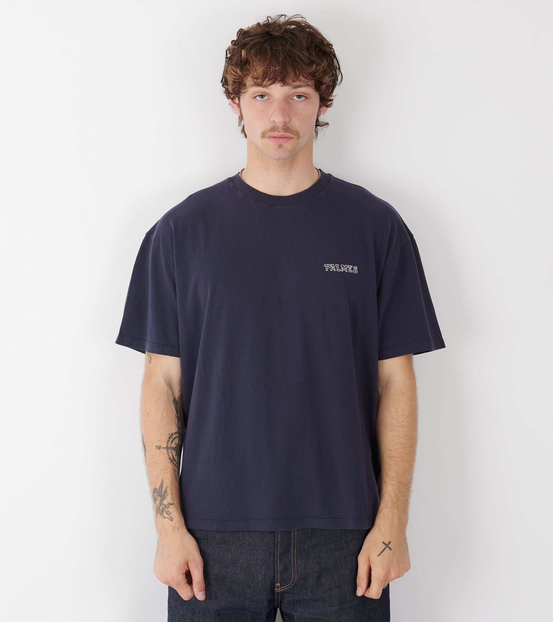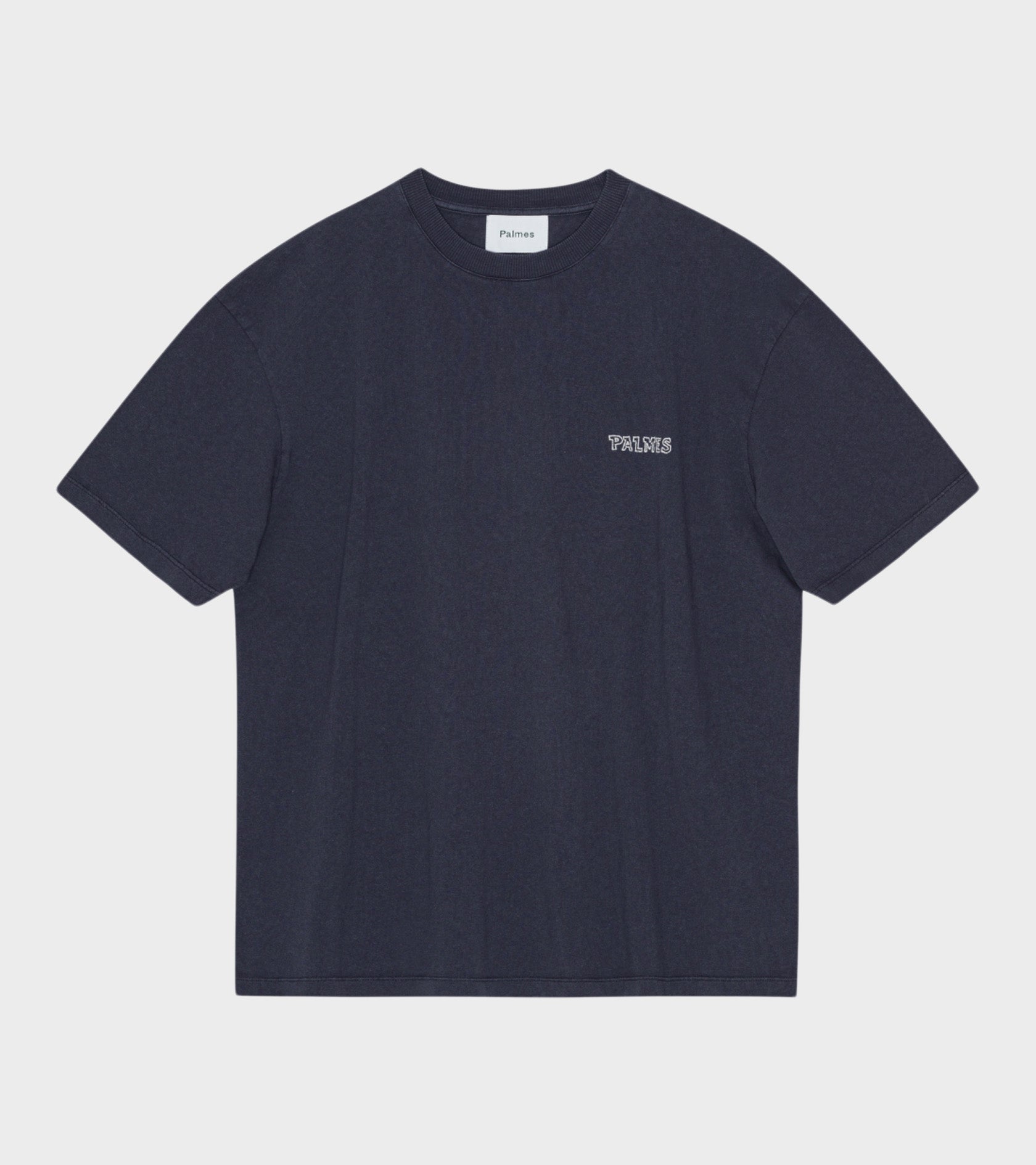 Dark blue t-shirt from Palmes. This t-shirt has an embroidered logo on the left chest.