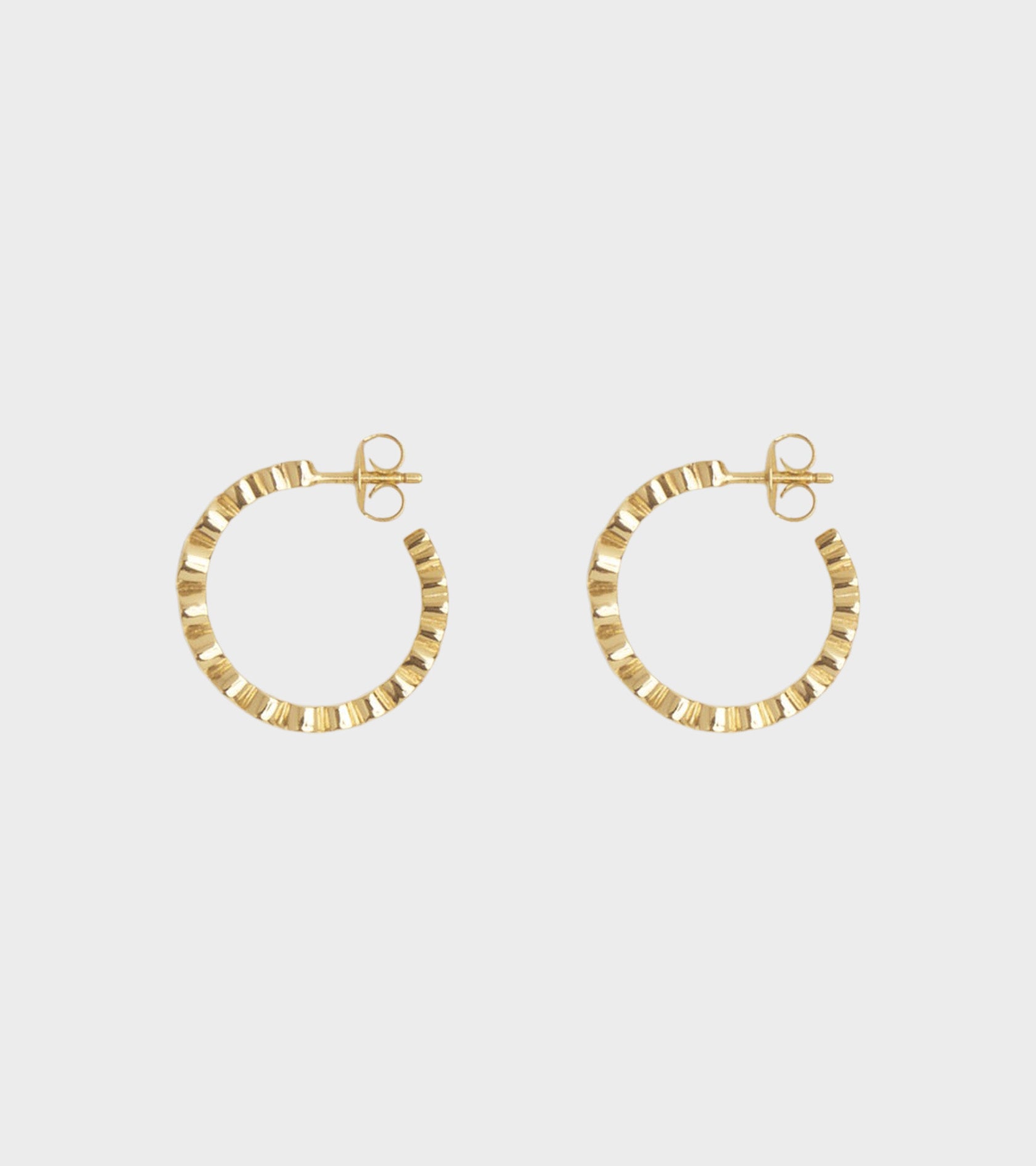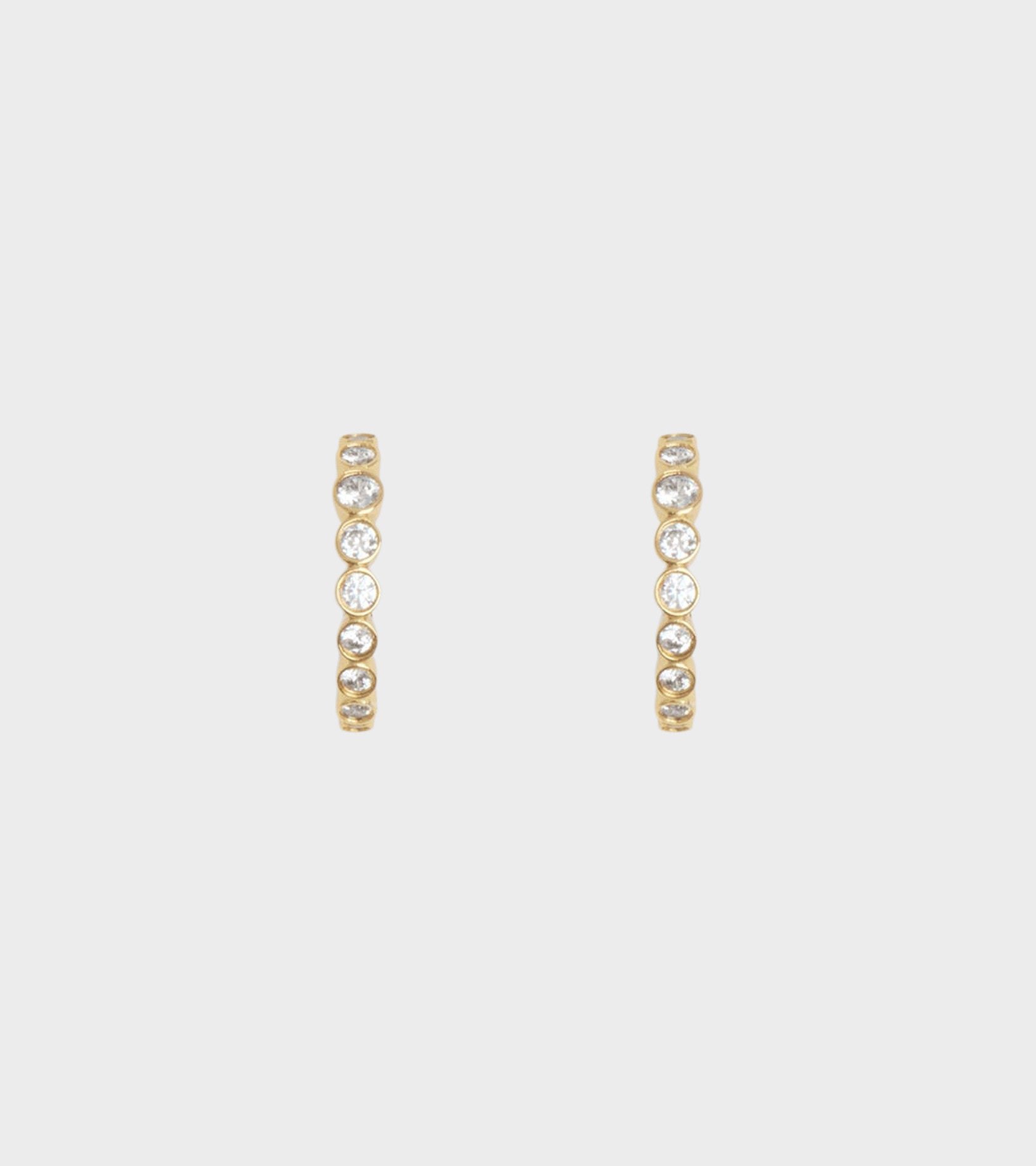 Ottilia Hoops from Ragbag. These earrings are made of 18 karat gold plated sterling silver and is detailed with small sparkling ' Cubic Zirconia' stones.