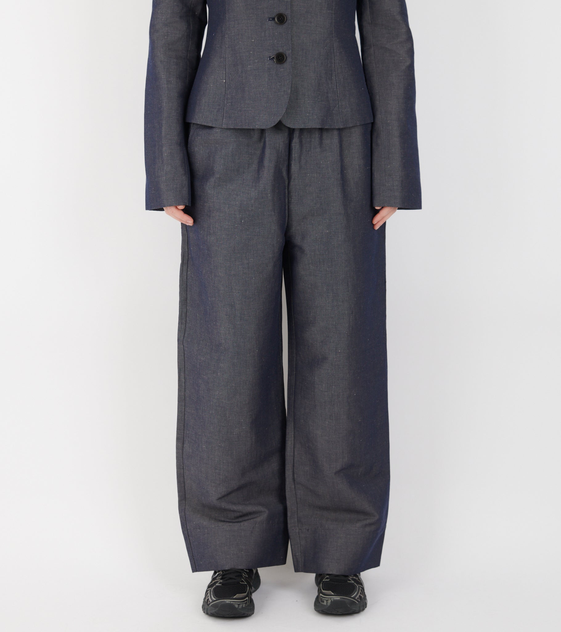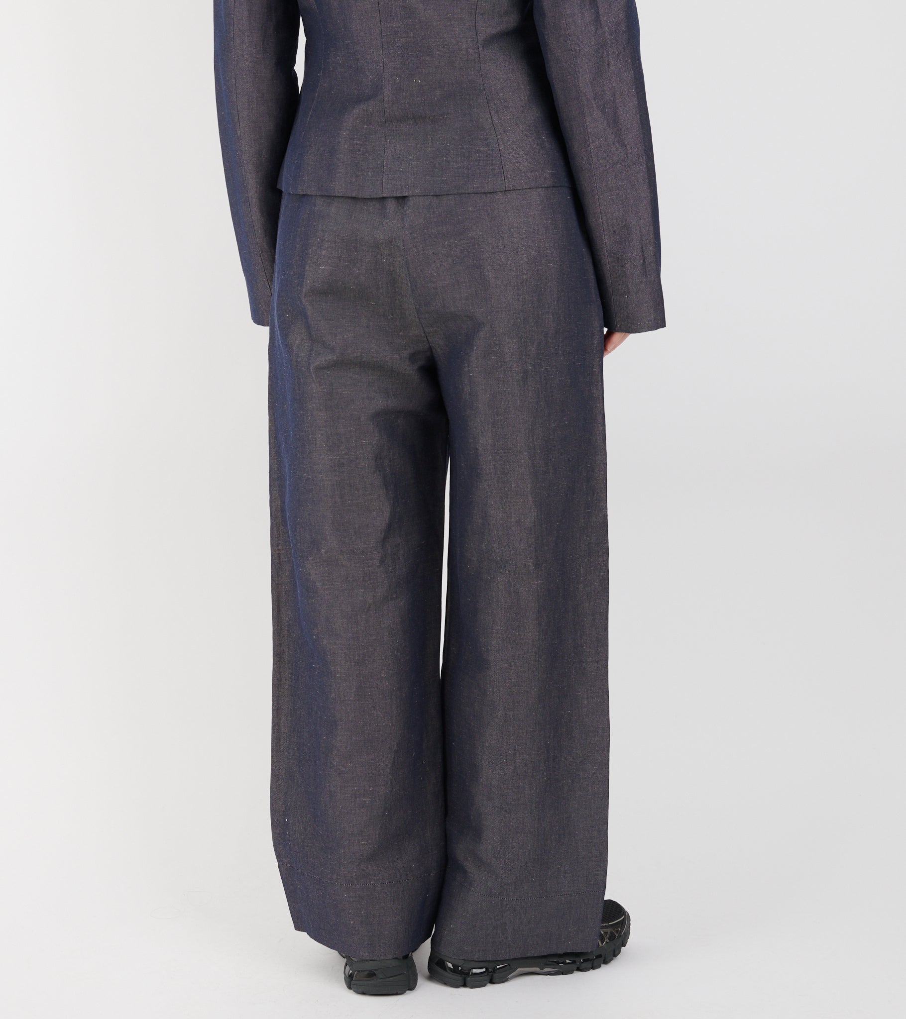 Pants in organic cotton from Skall Studio. Jasmine Pants have an elastic waist and a side pocket on each side. The pants have a slightly relaxed silhouette with wide and slightly cropped legs.