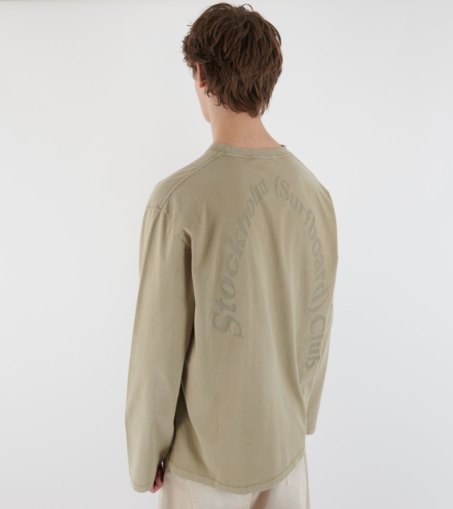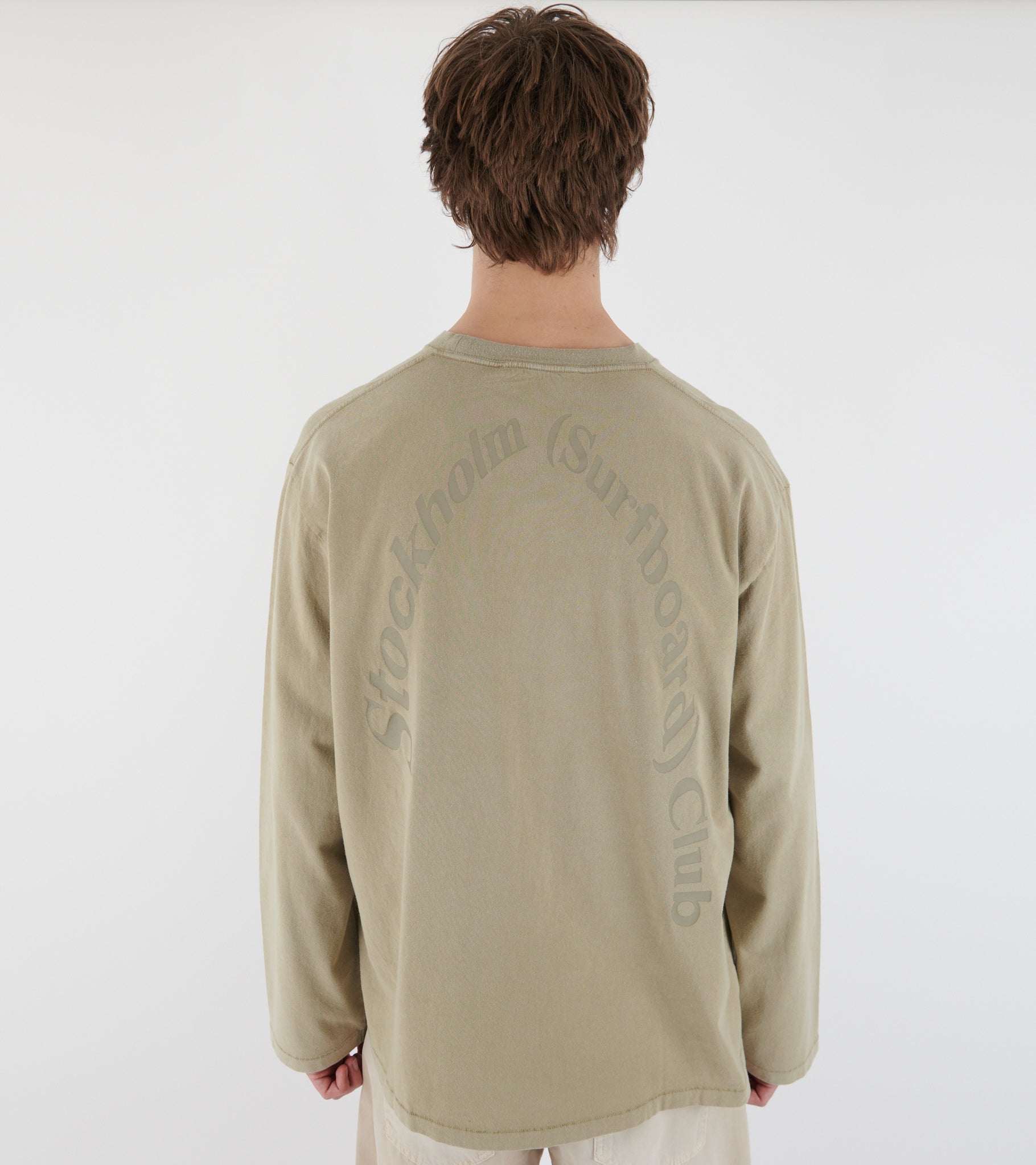 Beige long-sleeved t-shirt in recycled cotton from Stockholm (Surfboard) Club. The t-shirt has logoprint on the back.