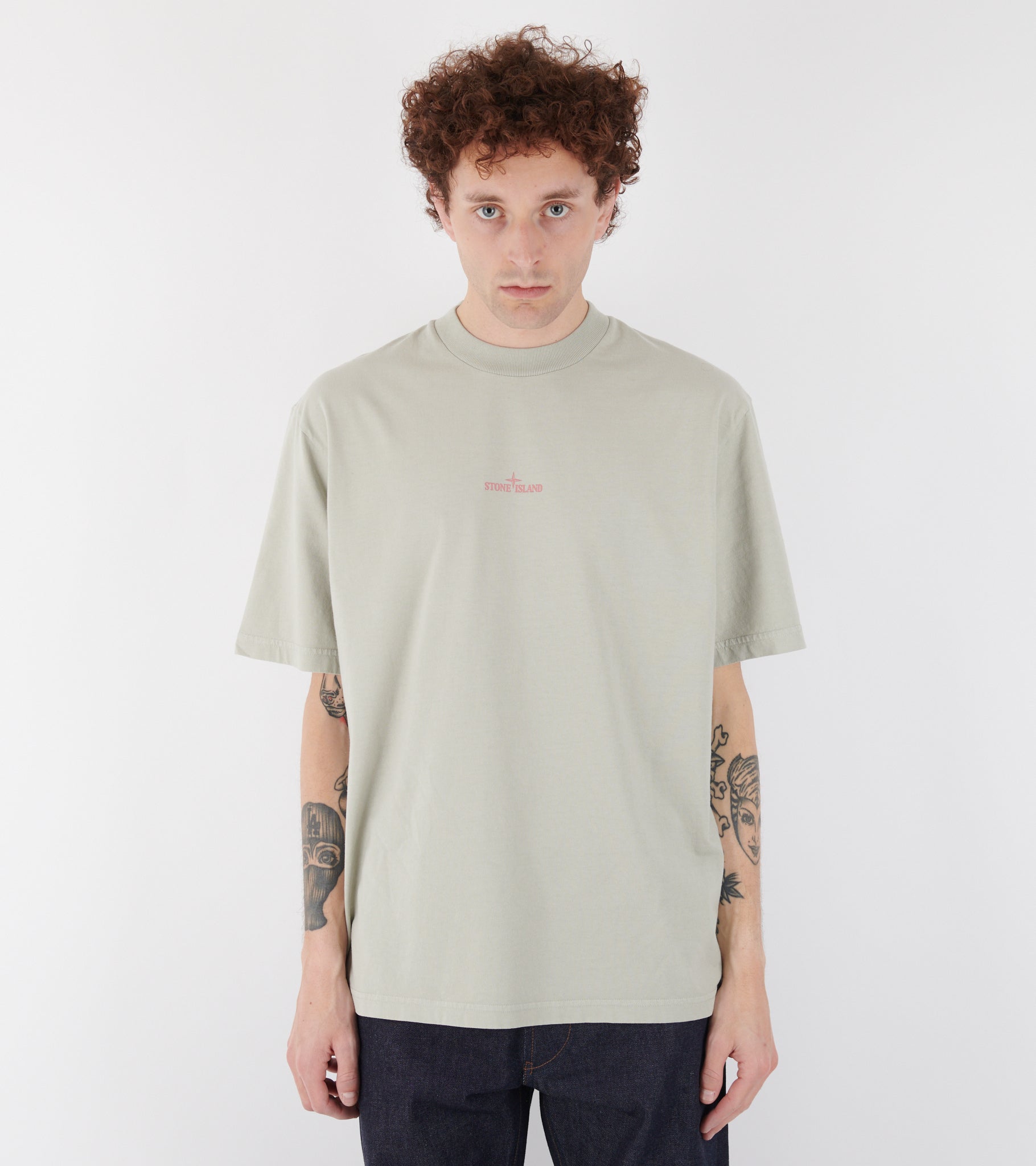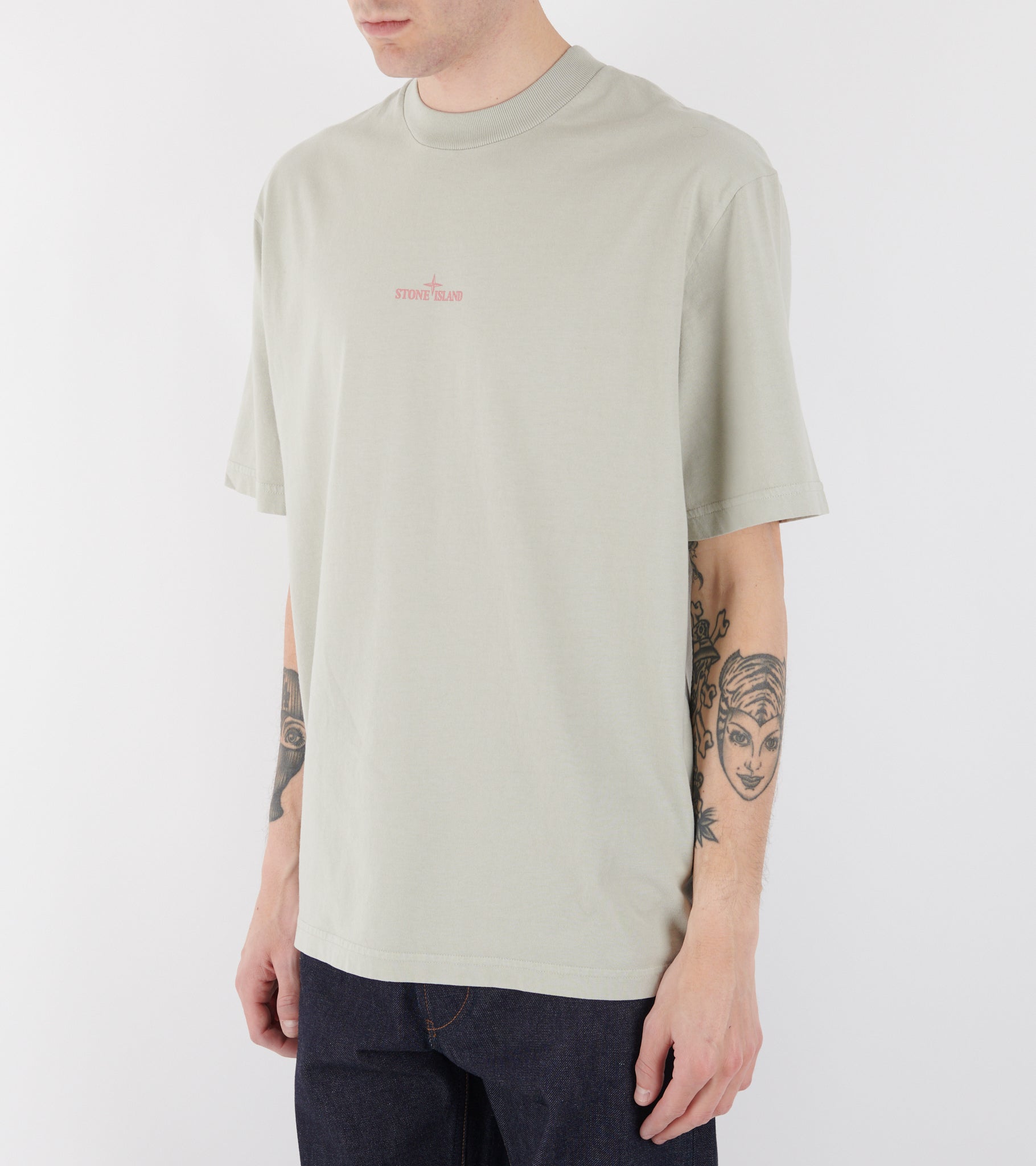 T-shirt in organic cotton from Stone Island. The t-shirt has a pink logo on the front and a print on the back.