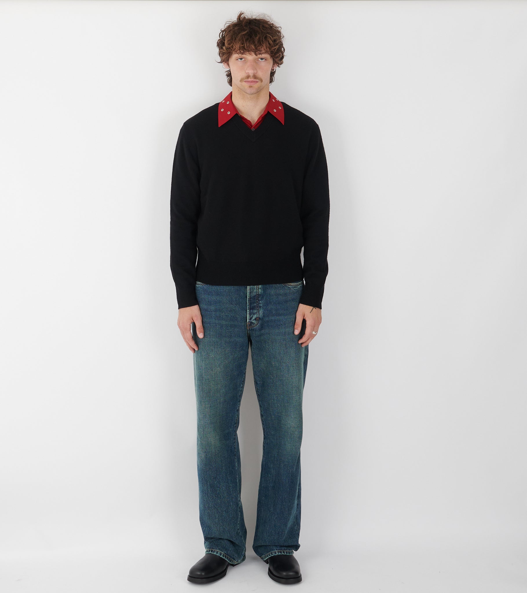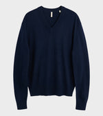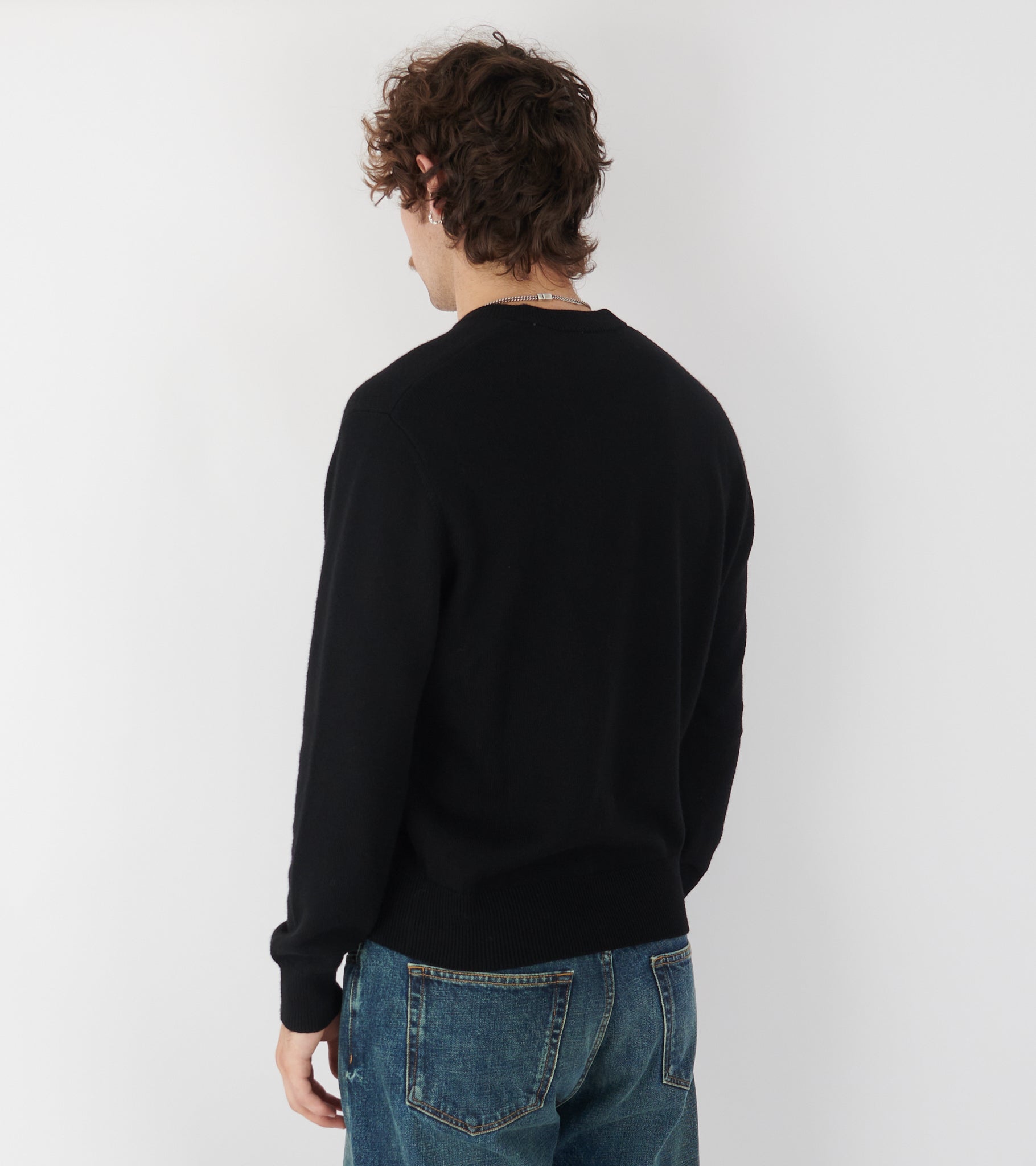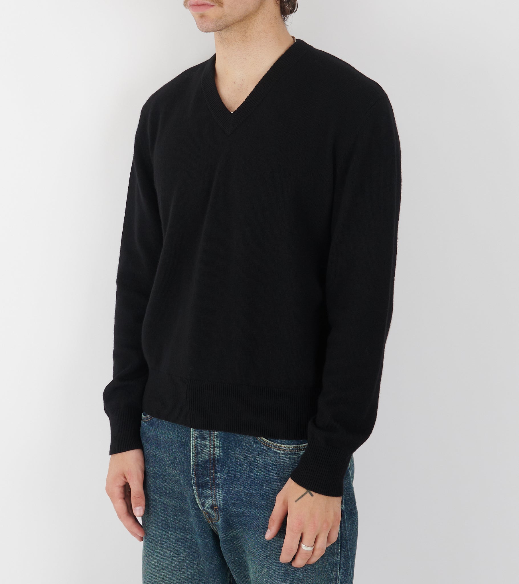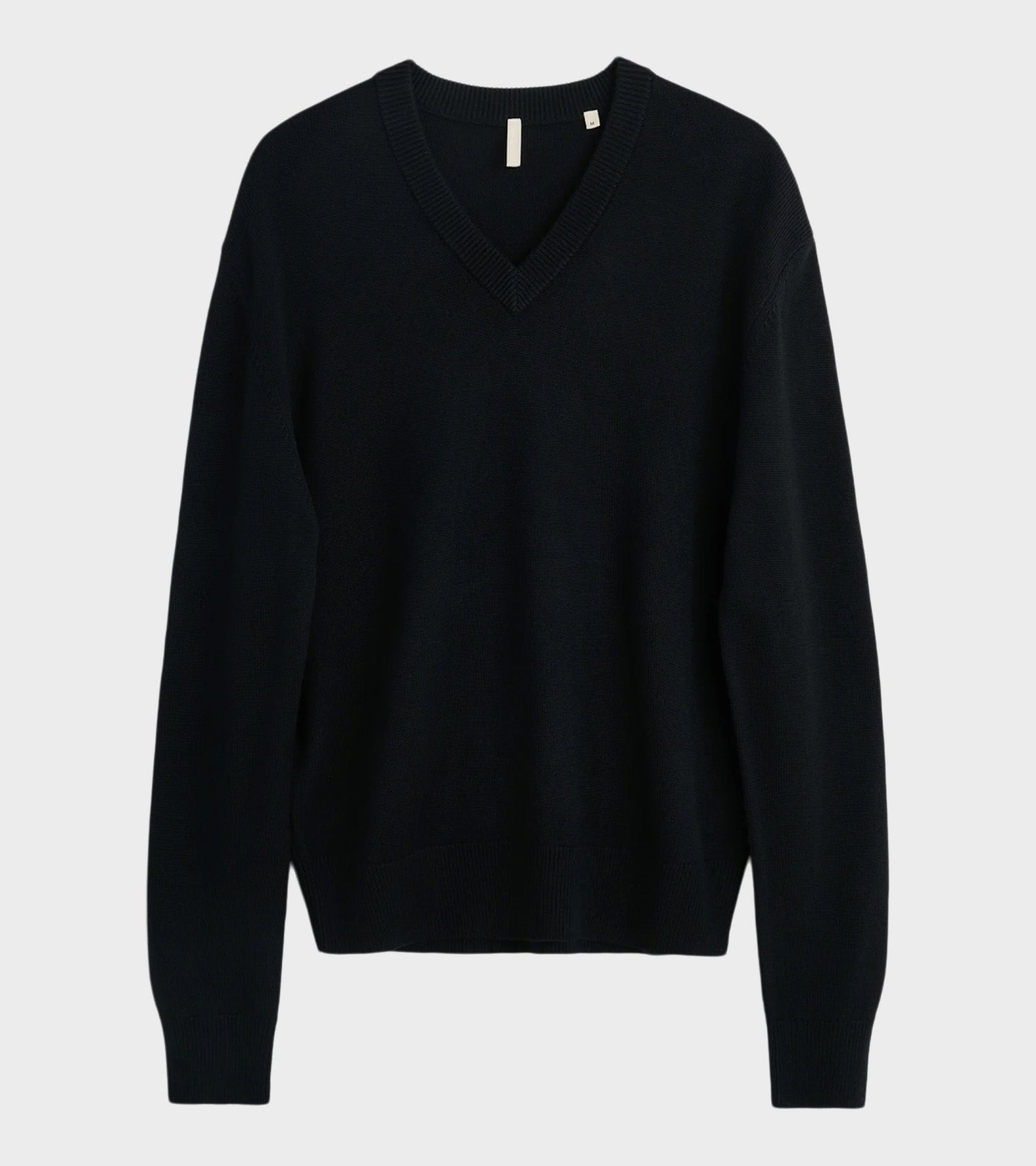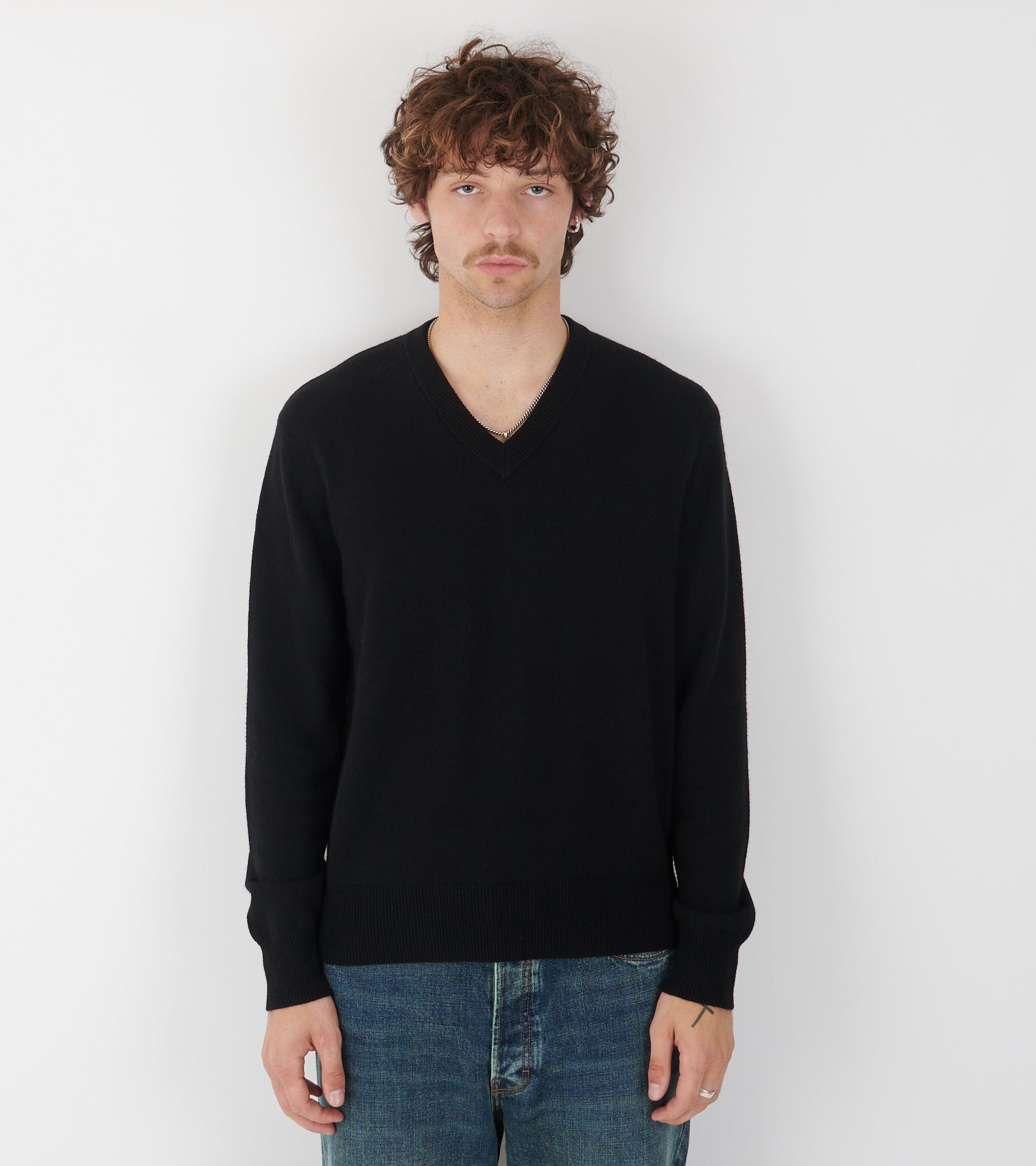 Black knit with v-neck from Sunflower. Moon Merino V Neck is made of 100% merino wool and has rib knitted edges.