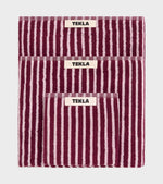 Guest towel in the color 'Red & Rose' from Tekla. The towel is made of 100% organic cotton and is produced in Portugal. Guest Towel measures 30 x 50 cm. All towels from Tekla are free of harmful chemicals.