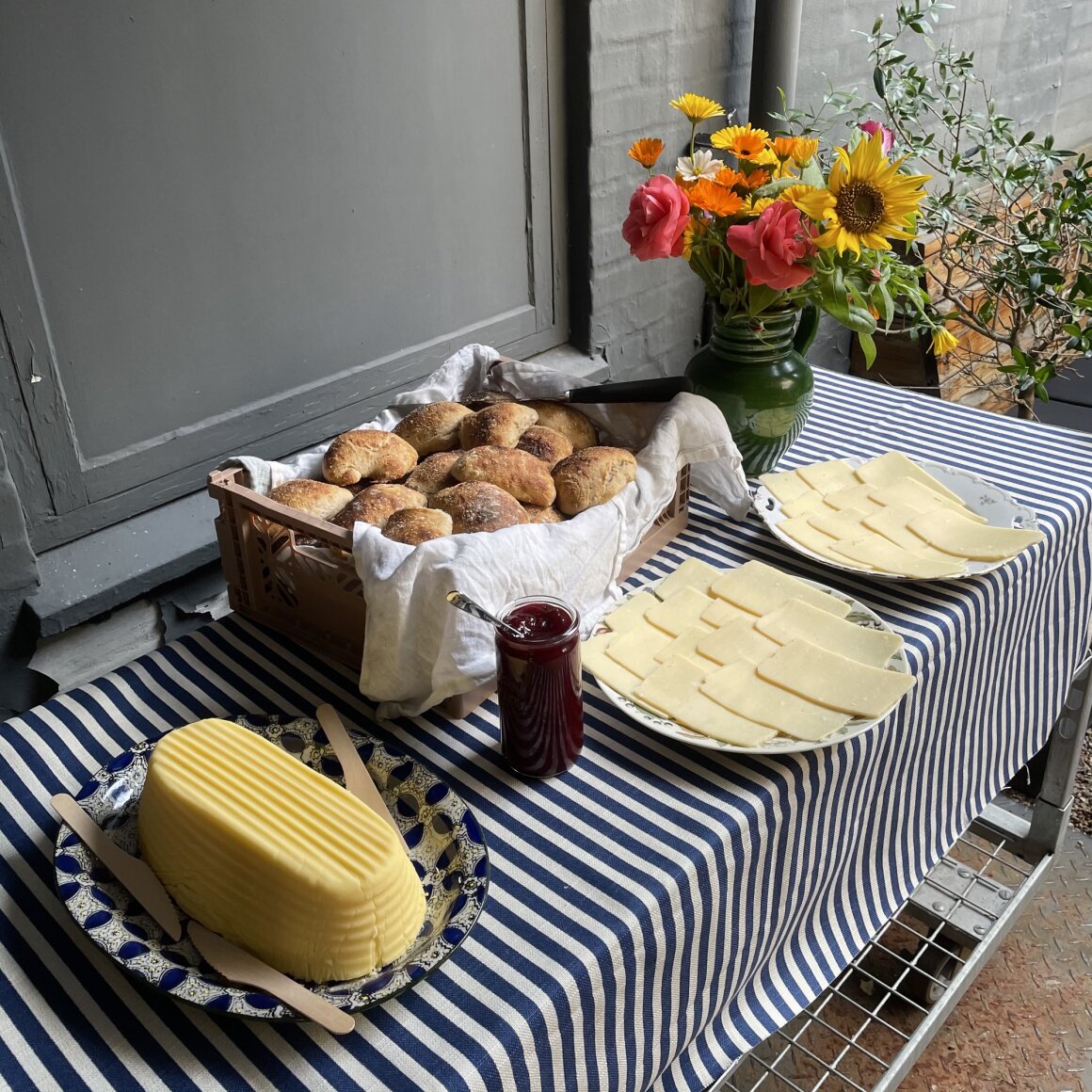 Our guests were spoiled with homemade sourdough buns with cheese, jam and butter, served with the most delicious apple juice with rhubarb.