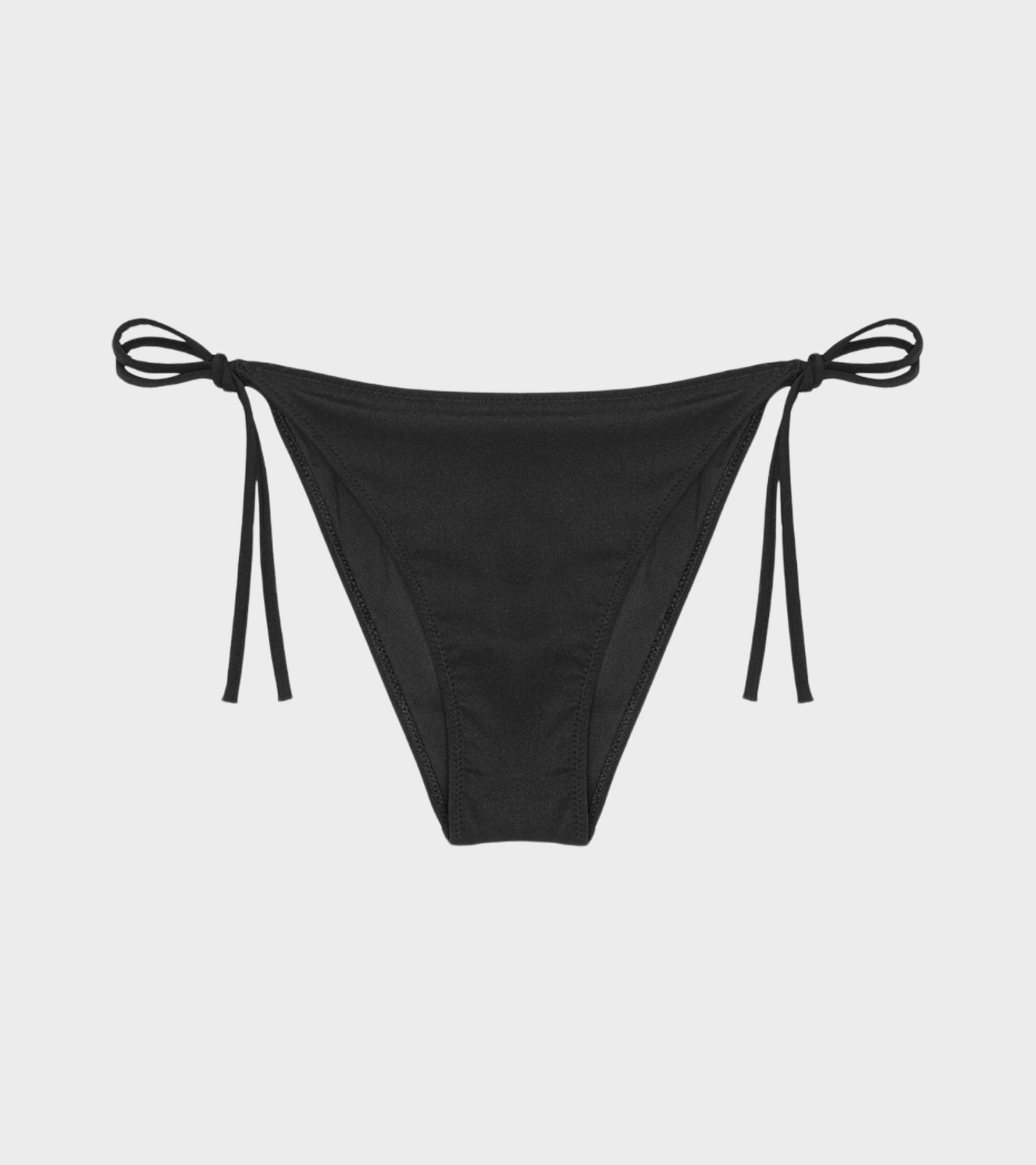 Black bikini bottom from Alipo. This bikini bottom is made from a blend of recycled nylon and elastane. It has a tie closure on each side, is made in Portugal and comes with a dust bag.
