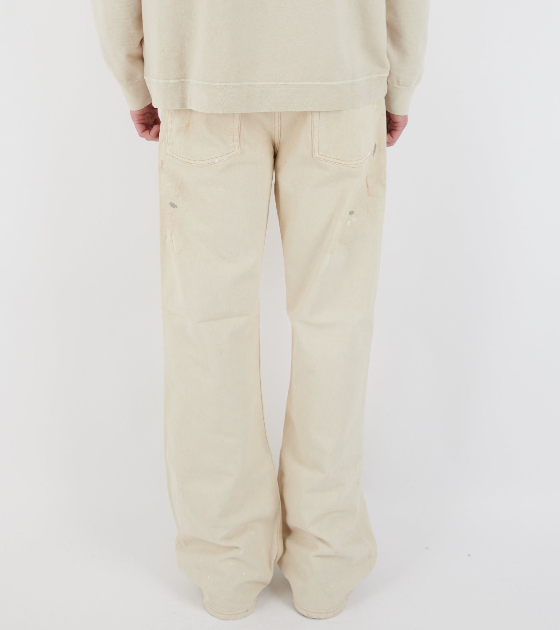 Off-white jeans with distressed details from Acne Studios. At the top of the back is a light pink leather logotag.