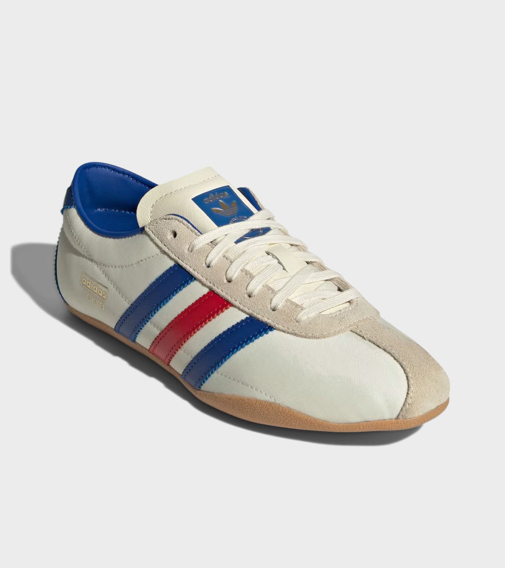 Tokyo W from Adidas in an off-white shade with cobalt blue and red details.