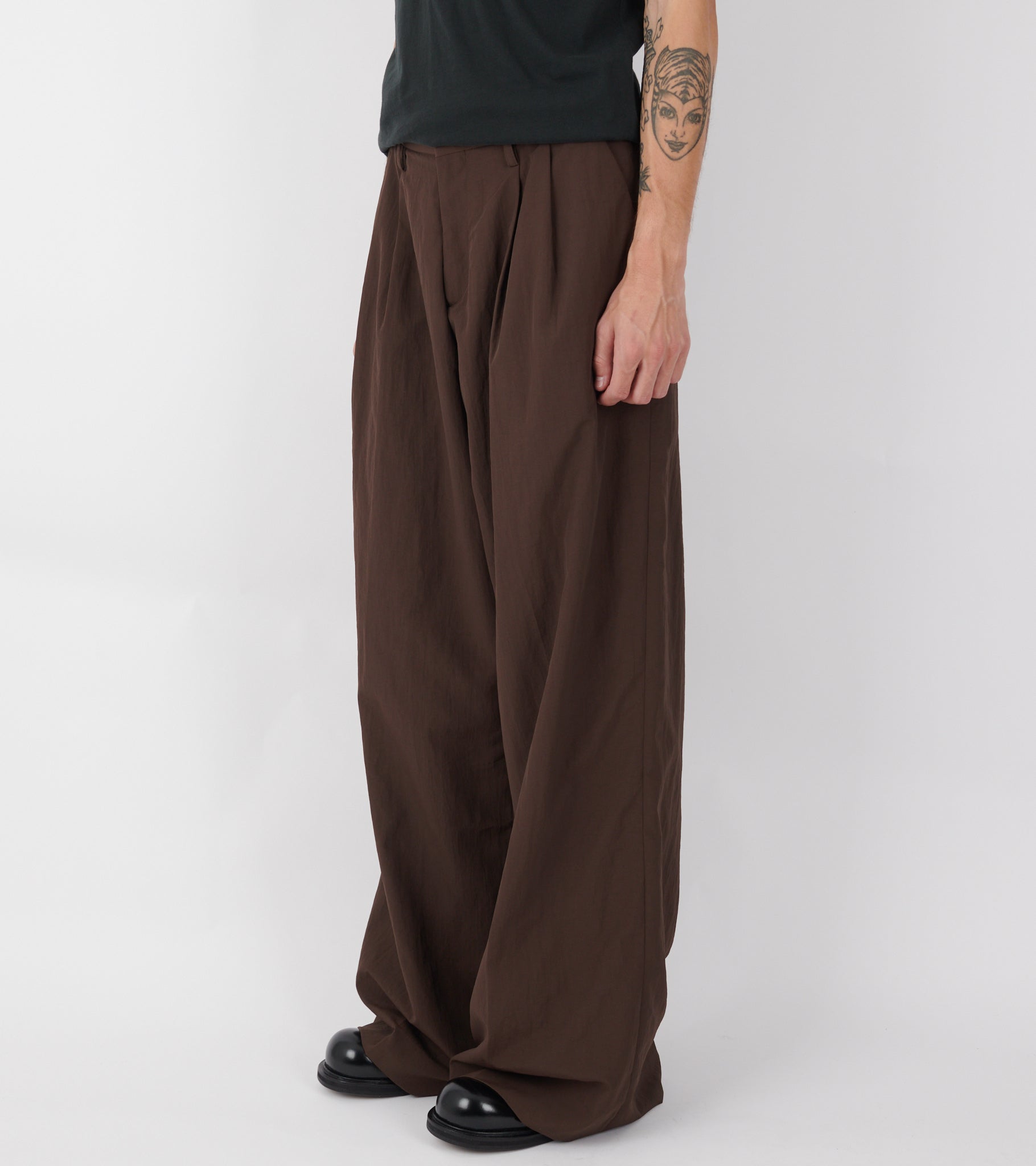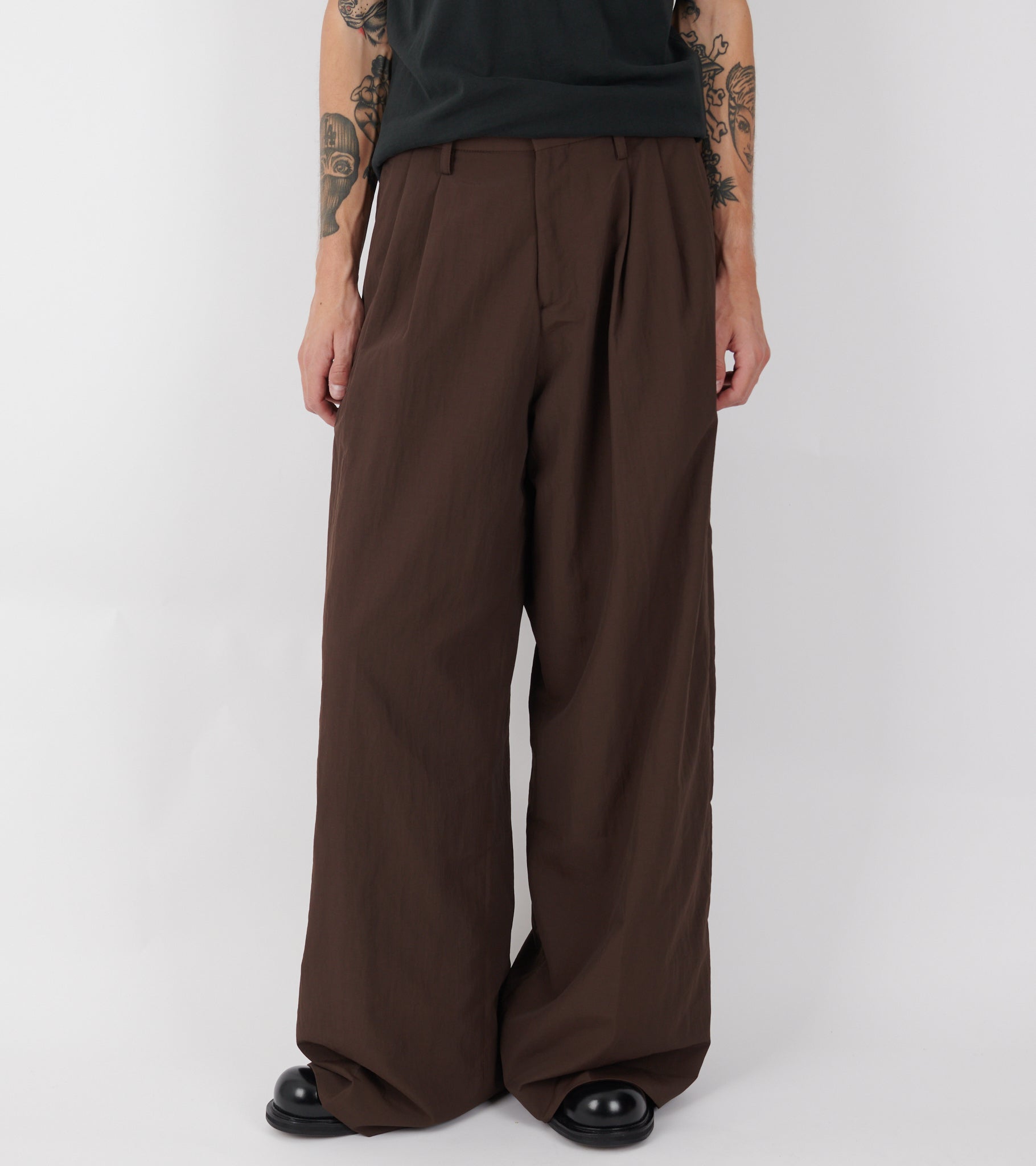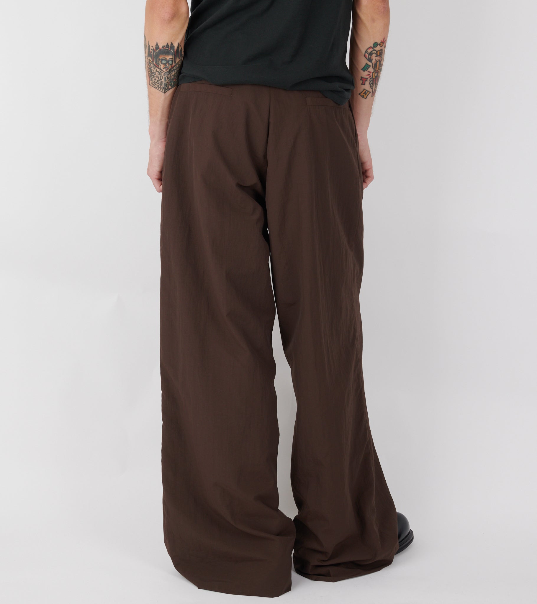 Pleated Nylon Suit Trousers Dark Brown