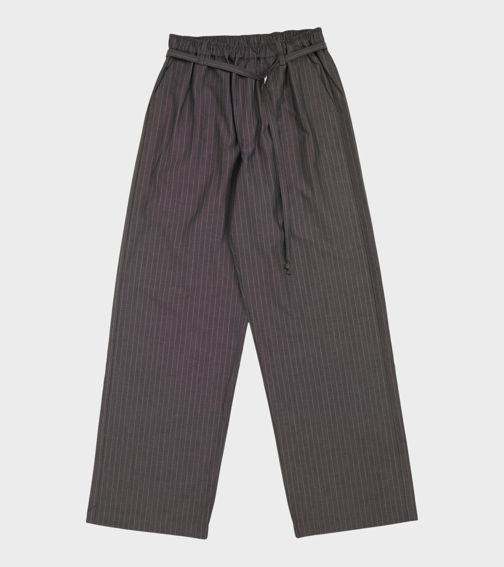 Dark grey pinstriped trousers from gentag. Ingrid Pant Dark Grey Pinstripe are made of cotton and have a matching detachable belt with a small silver buckle at the waist. The trousers are made from Italian 'leftover' fabric.