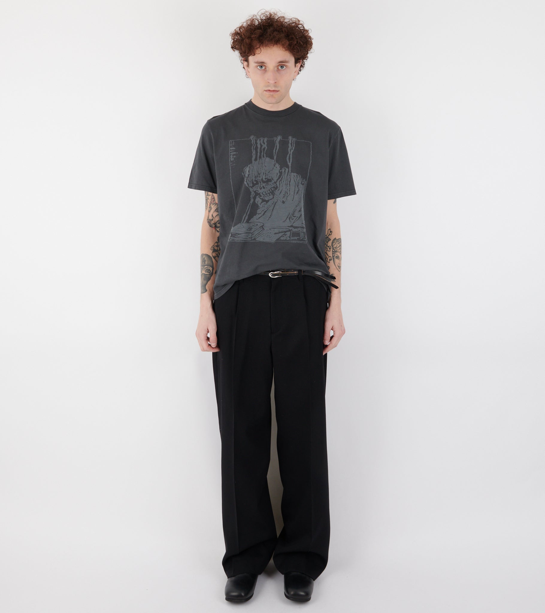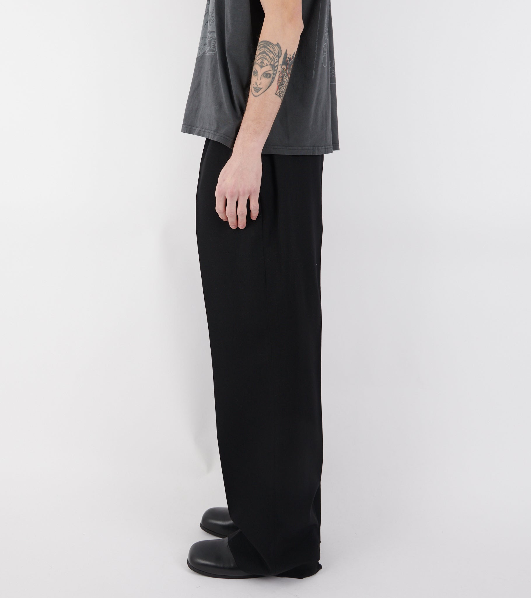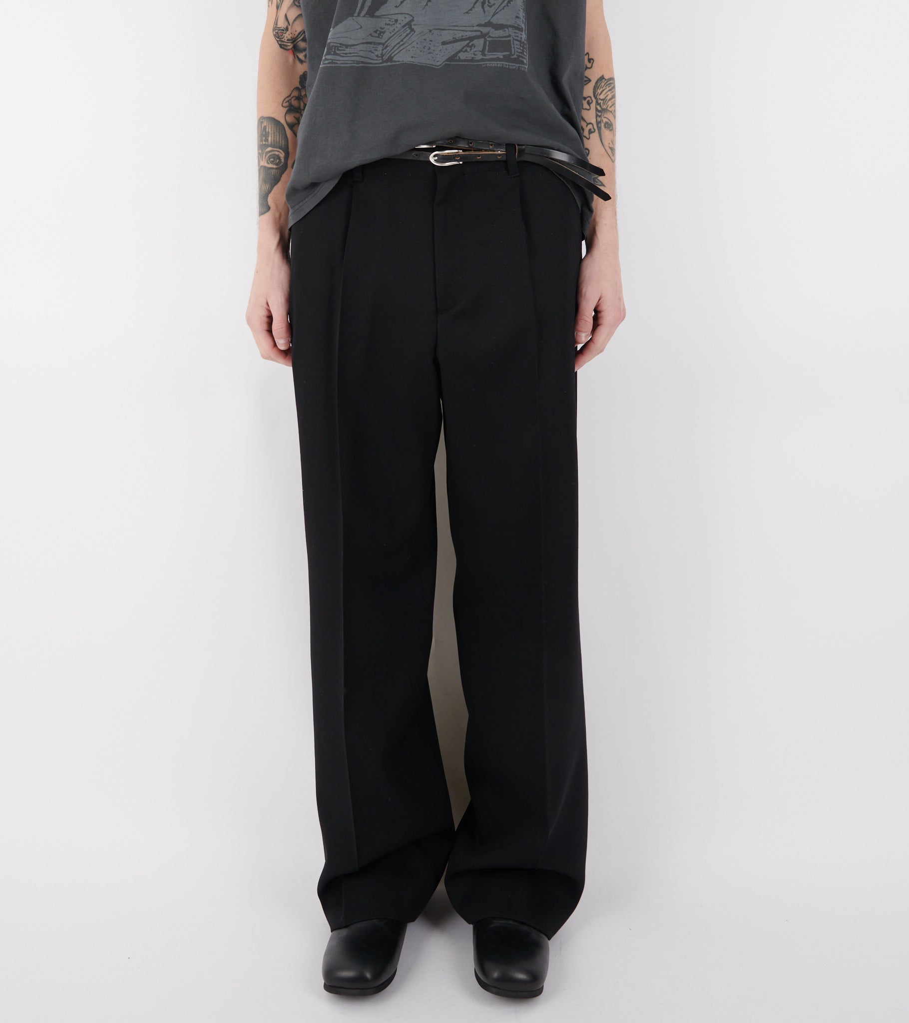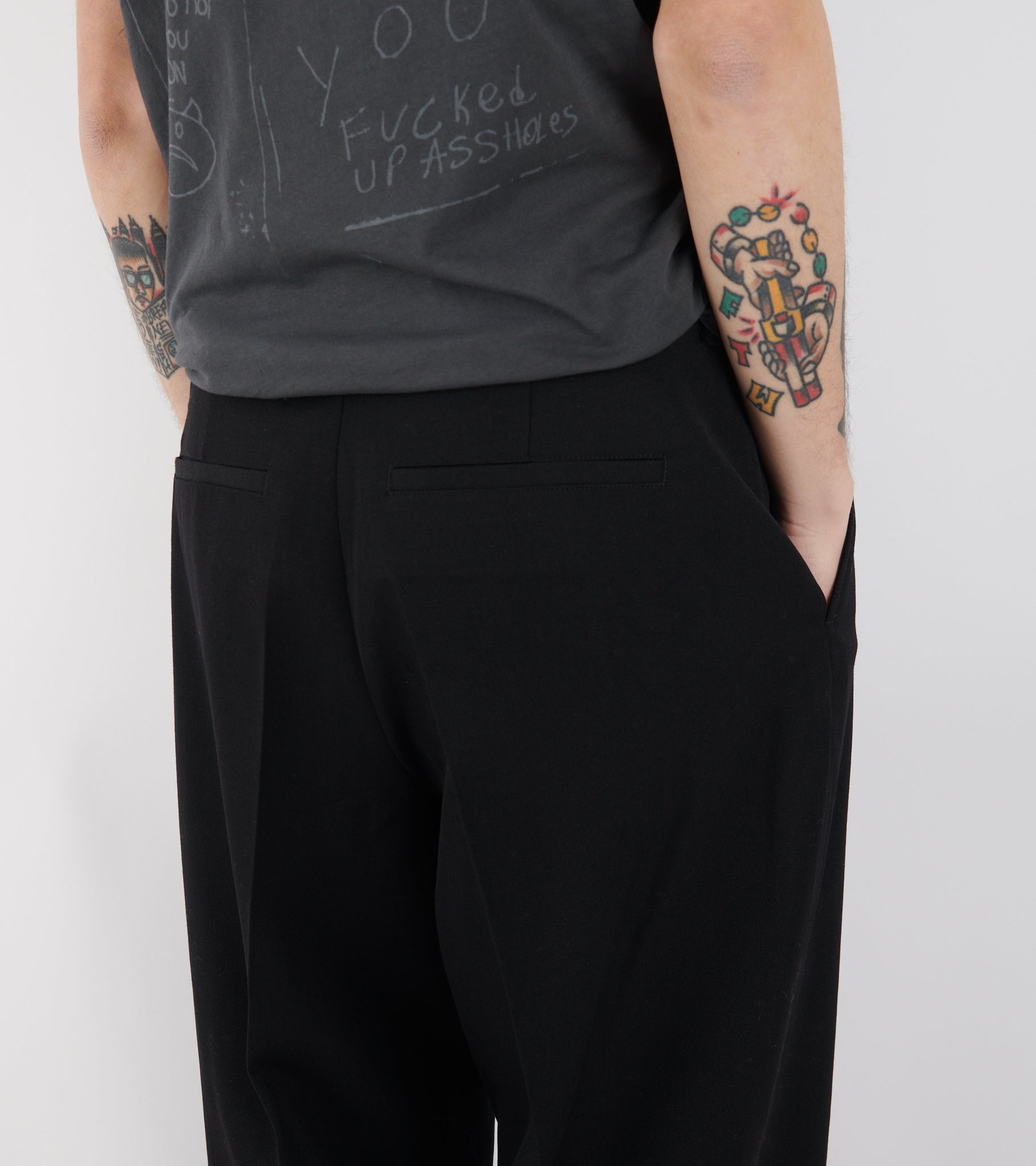 Black trousers in a virgin wool twill quality from Our Legacy. The trousers have belt loops, pleats on the front, a slanted pocket on each side and two slit pockets on the back.