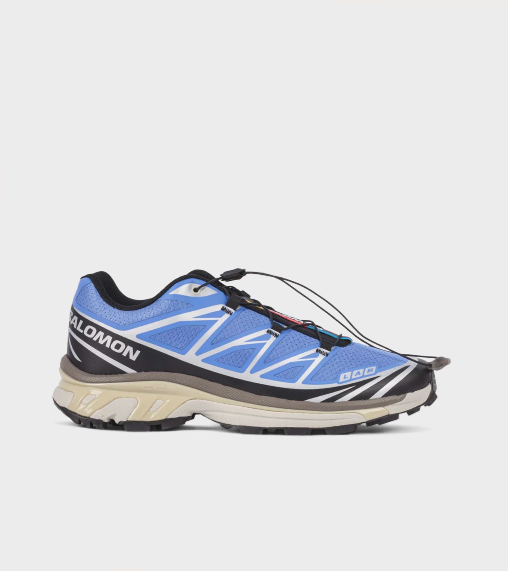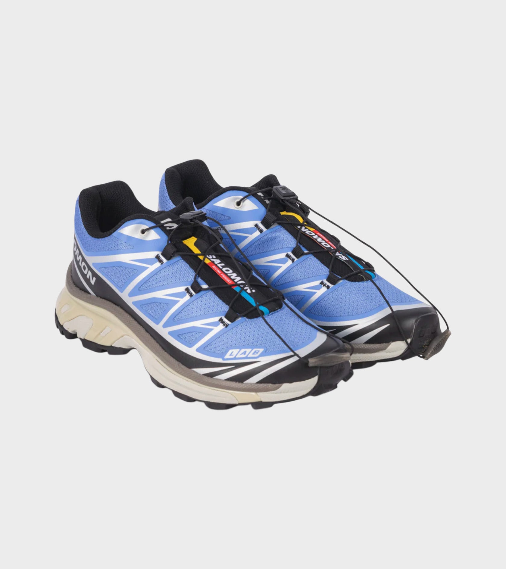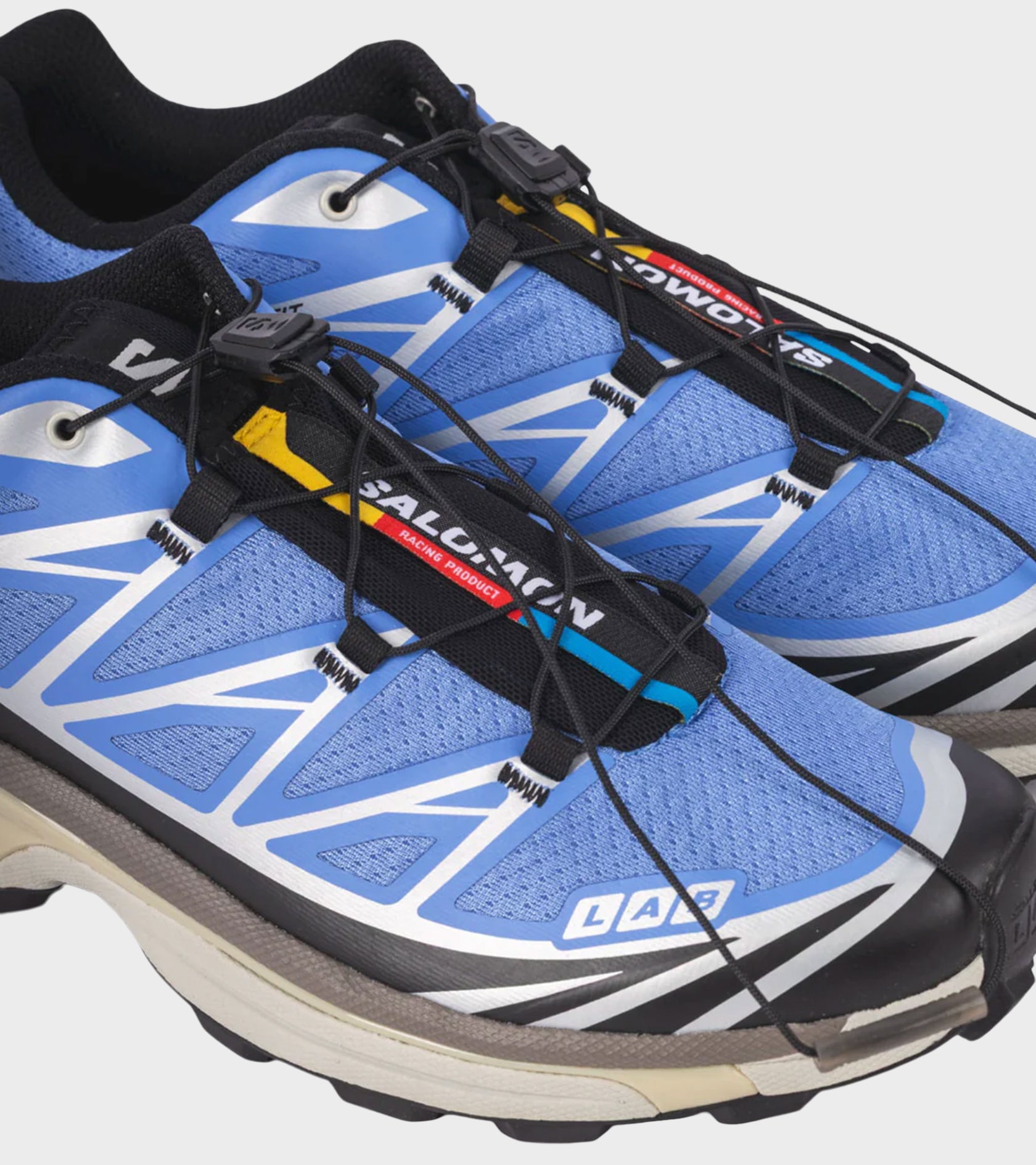XT-6 from Salomon in a blue shade with silver and black details. These sneakers have the classic Salomon details, such as the quicklace closure and the logo down the top.