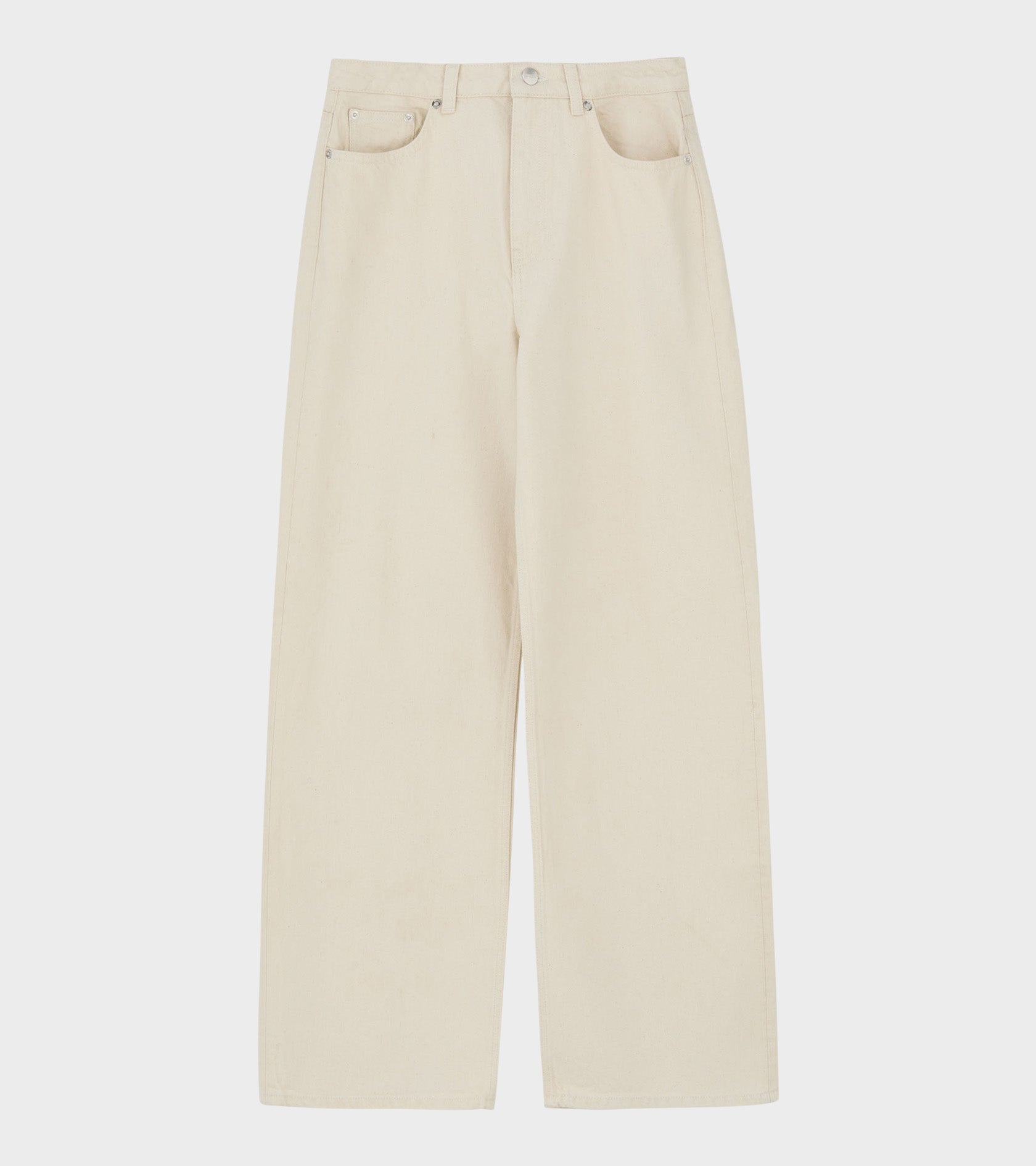 Light jeans in organic cotton denim from Skall Studio. Willow Wide Jeans have belt loops, three slant pockets on the front and two back pockets. At the top of the back is a discreet embroidered logo. The fit is slightly relaxed with wide legs.