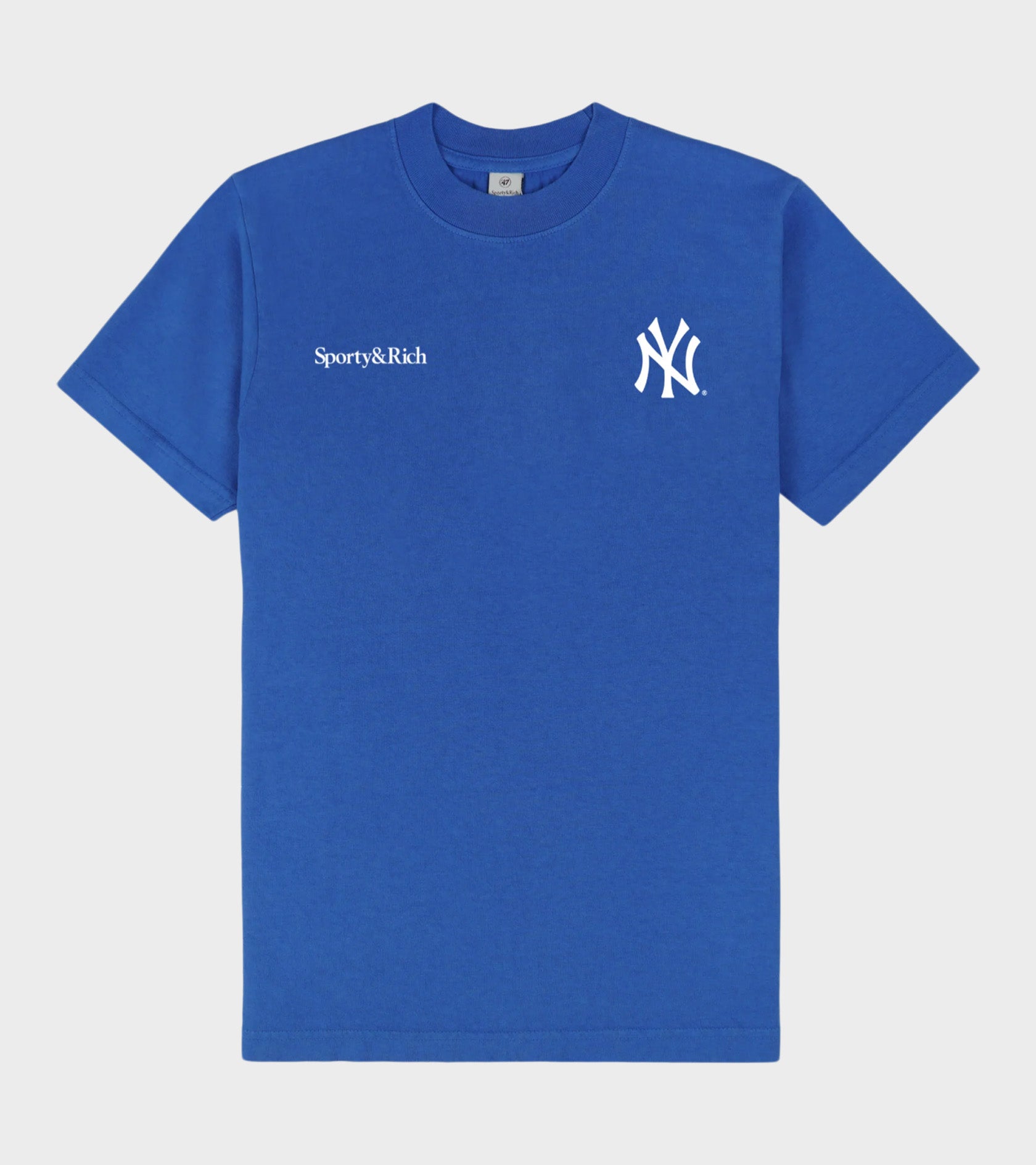 Blue t-shirt from Sporty & Rich in collaboration with New York Yankees.