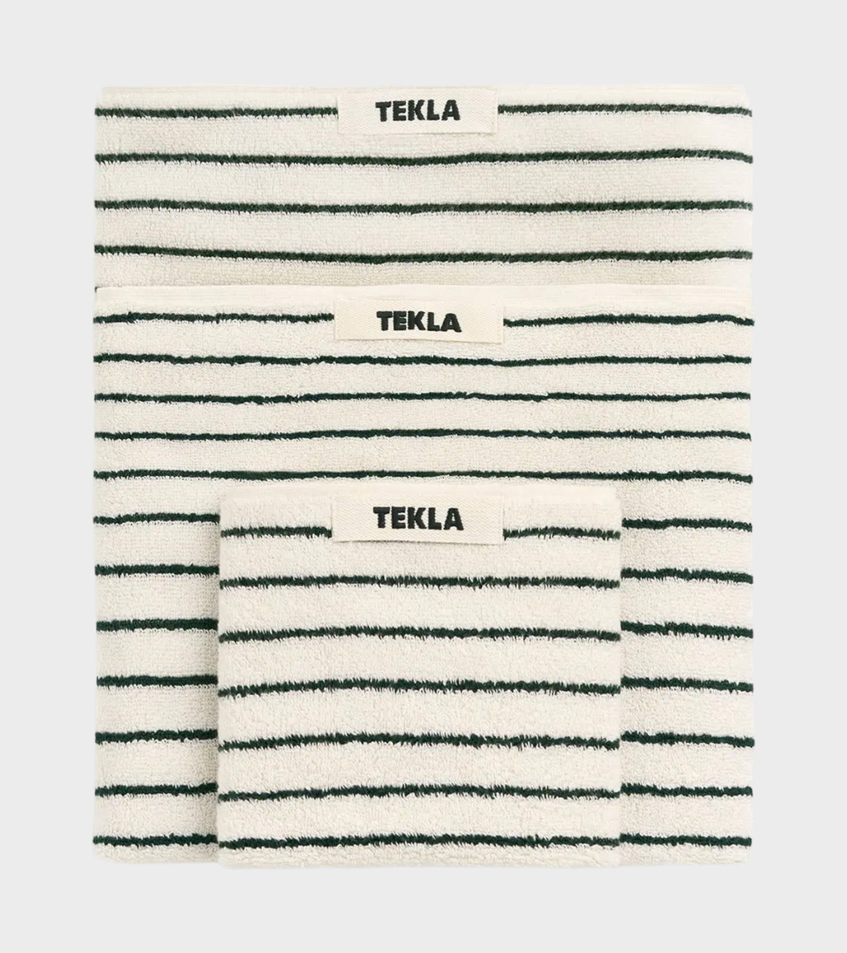 Håndklæde i farven 'Racing Green Stripes' fra Tekla.