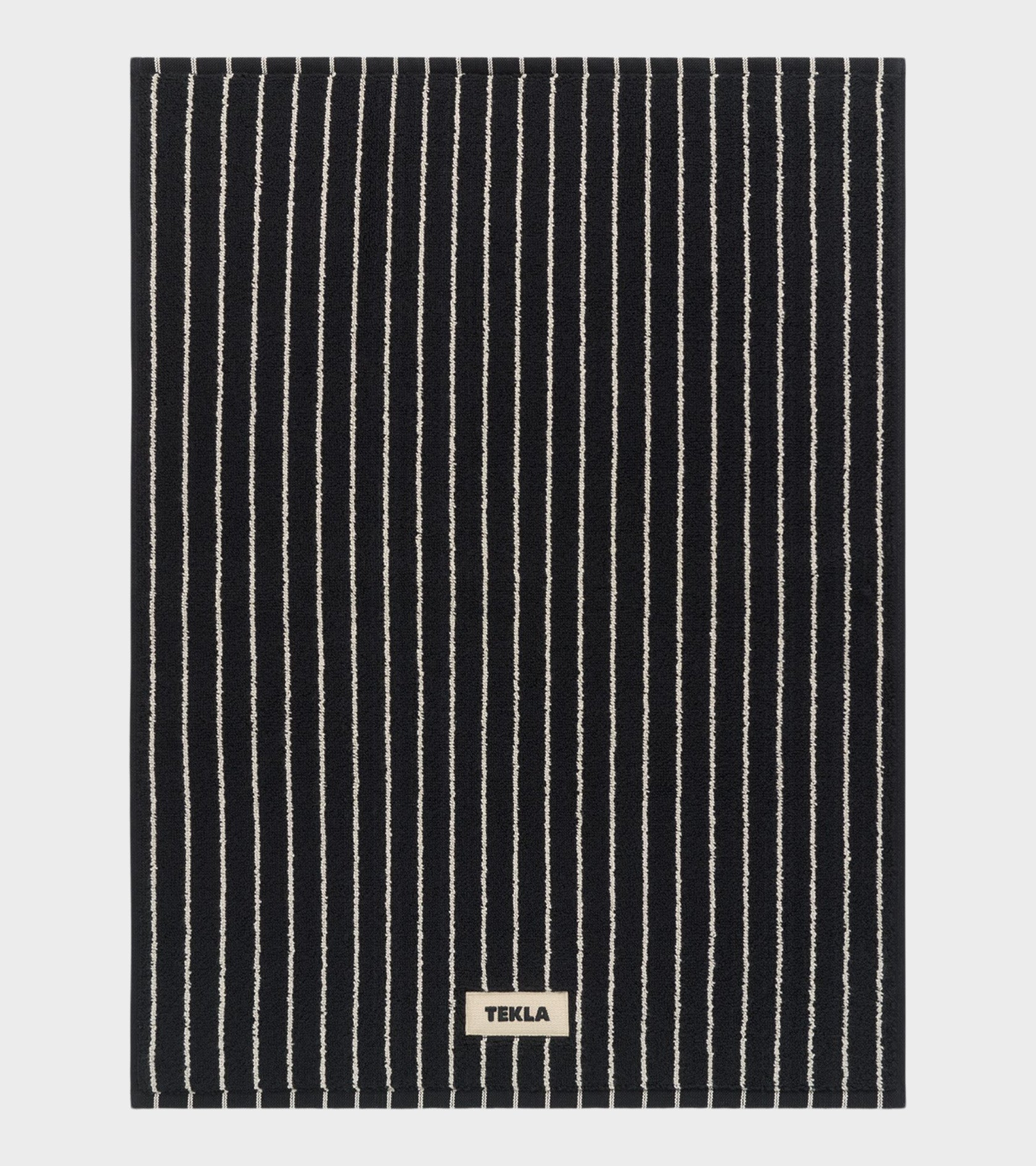 Bademåtte fra Tekla i farven "Black Stripes". Bademåtten er produceret i 100% økologisk bomuld og måler 50x70 cm.