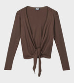 Langærmet rød rib bluse med wrap-lukning fra Nørgaard Paa Strøget. Denne bluse er fremstillet i en strækbar blanding af bomuld og naturlig modal. Den har en v-udskæring, bølgede kanter og kan bindes på både front samt ryg. Wrap Top er one size og er produceret i Danmark.