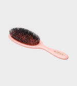 Lyserød hårbørste fra Mason Pearson. Denne model hedder 'BN2' og er en mellemstørrelse model. Børstehårene er fremstillet i en blanding af vildsvinehår og nylon. Den anbefales til folk med normalt til kraftigt hår. Børsten masserer og stimulerer hovedbunden, hvorved hårbundens naturlige olier bliver frigivet. Ved gennembørstning bliver olien fordelt ud i længden af håret, så håret får en naturlig glans samt fylde i bunden.