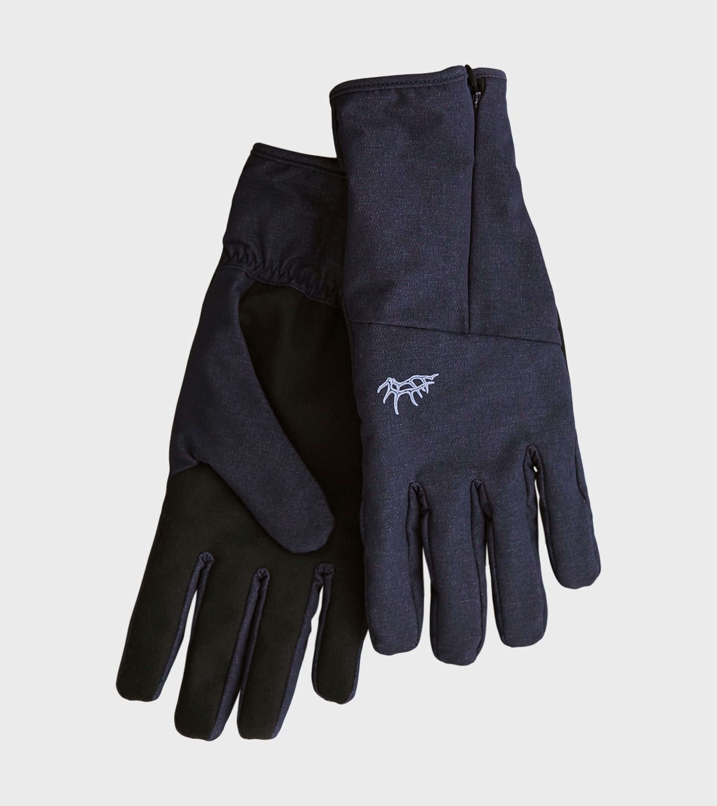 Mørkegrå handsker fra Elmer By Swany. Disse handsker har en diskret lynlåslukning og et broderet logo øverst. Håndfladen er i lammeskind og kan bruges til berøring af touchskærme.
