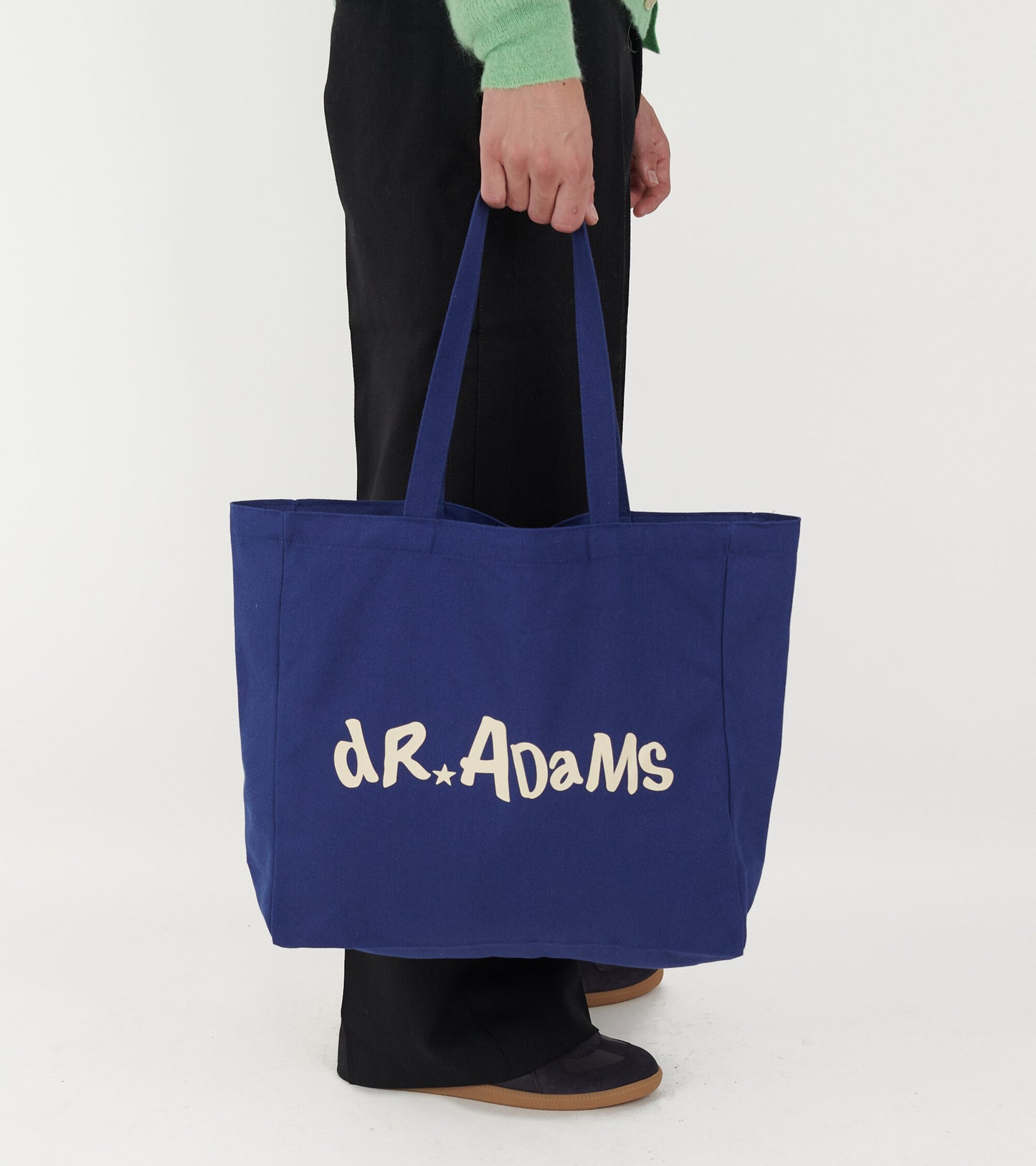 Blåt net med 'dr Adams' printet på fronten. Dette net er fremstillet i en let kraftig bomuldskvalitet og måler 35 x 38 x 10 cm.