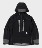 Sort skaljakke fra And Wander. Denne jakke er fremstillet i en vandafvisende Pertex nylon kvalitet og har en dobbeltgående lynlåslukning, en justerbar hætte og to lynlåslommer på fronten. I hver side af jakken er en lynlåsdetalje, så den kan åbnes op i siden. Jakken har et refleks-logo på fronten.