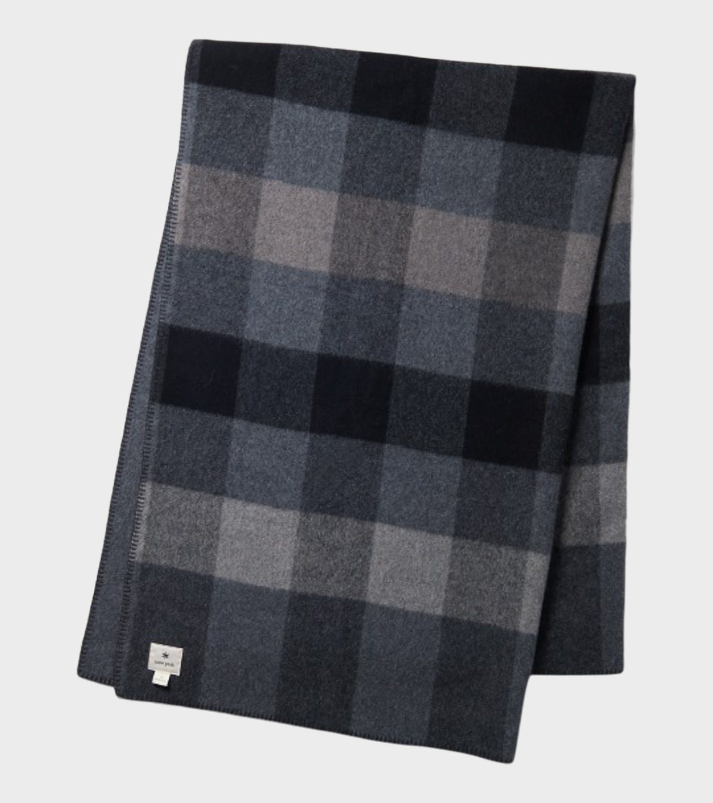 Ternet tæppe fra Snow Peak. Dette tæppe er fremstillet i en genanvendt uldblanding og måler 213 x 143 cm. Tæppet har sorte syninger og et lille logotag i det ene hjørne. Recycled Wool Blanket er produceret i Japan.