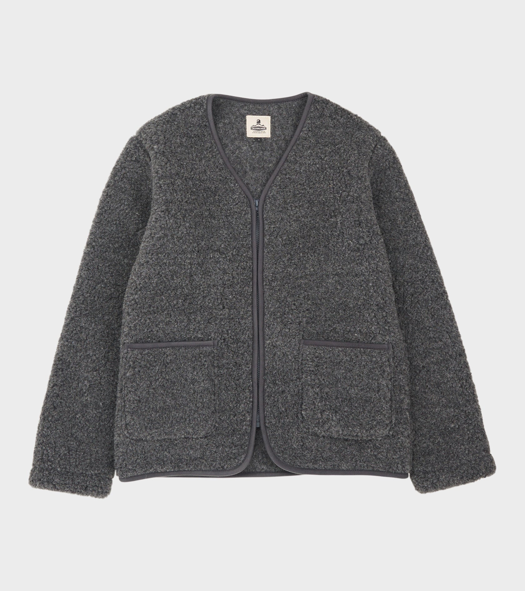 Mørkegrå unisex uldjakke fra Coldbreaker. Denne jakke er fremstillet i irsk langhåret uld fra den irske fabrikant 'Yoko Wool'. Jakken har en v-udskæring, en lynlåslukning, to lommer på fronten og kontrastkanter i polyester.