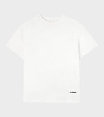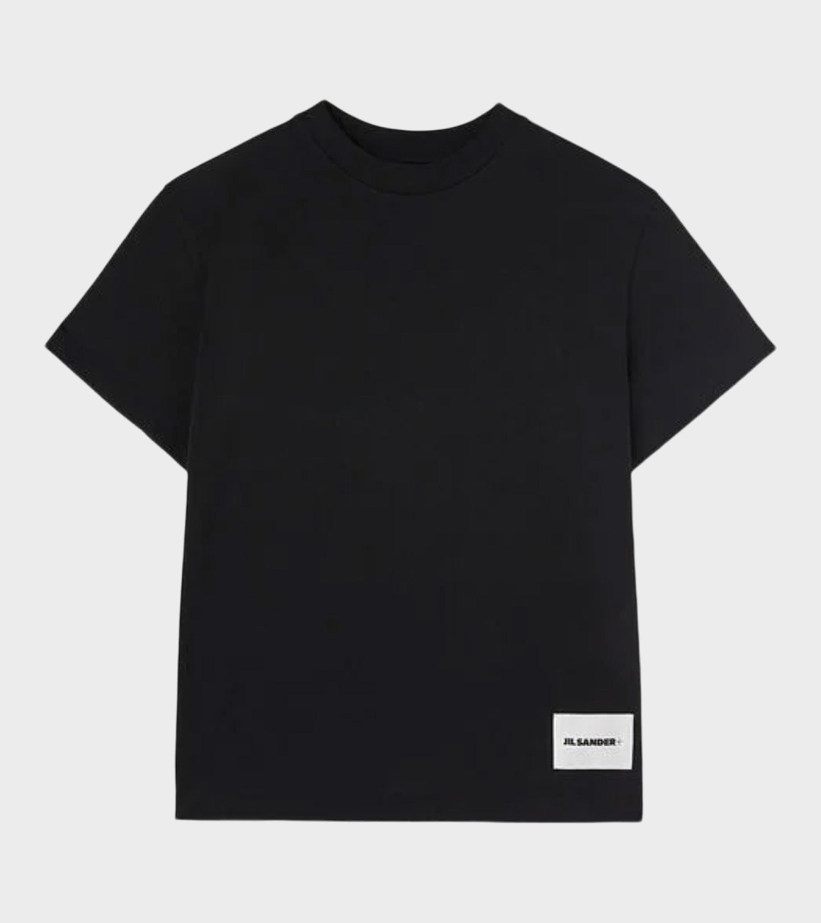 Sæt med tre sorte t-shirts fra Jil Sander. T-shirten er fremstillet i økologisk bomuld og er produceret i Portugal. Den har en rund hals og et hvidt logo nederst i venstre side. De kommer i en medfølgende dustbag.